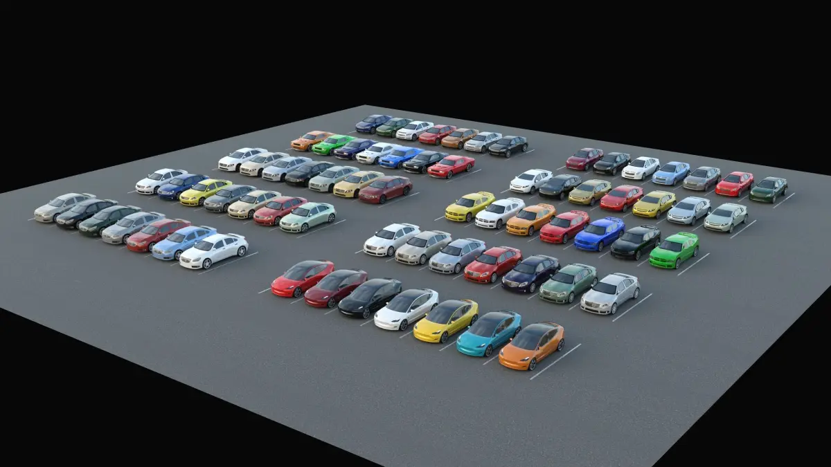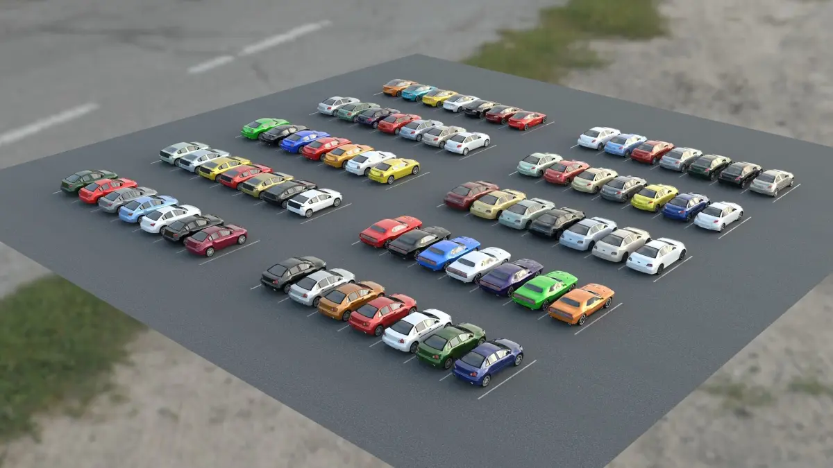 Professionally modeled and efficent low-poly (2500 per car average) PBR vehicles for large scenes or small! 10 car models with 7 paint colors already set up and applied in the Max scene and exports DWG, OBJ and FBX files.Headlights and tail lights are emissive mapped and included. All paint colors can be changed instantly as the vehicle bodies are a solid color, not a mapped color. These vehicles look great close or far away. If you have been looking to add the next step of reality to your scenes or games without losing preformance, these vehicles are for you. We also sell each of the vehicles (7 per vehicle model set) as seen here for only $10 if you don't need the entire parking lot. Works in Max or any modeling program, including UNITY and UNREAL 4/5. These vehicles have been completely upgraded to the latest PBR standards and are an incredible value at only $69.00