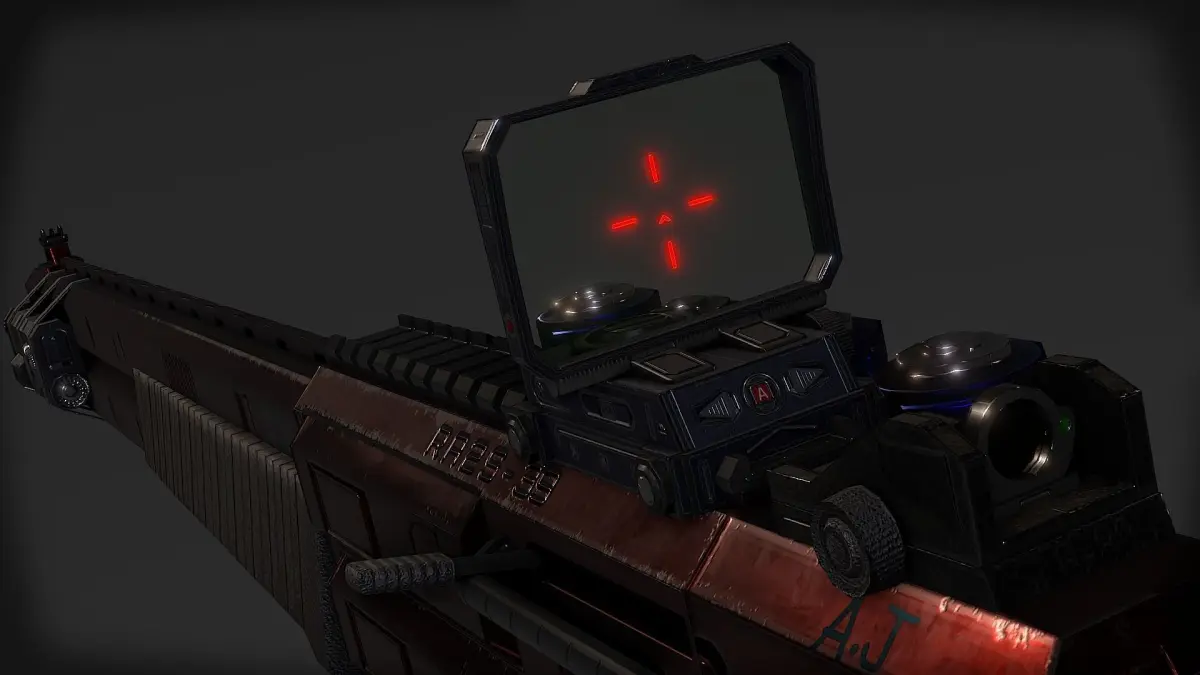 The gun is game ready featuring 4k PBR textures for the main weapon and separated texture sets for the Target Finder and the Laser attachment.