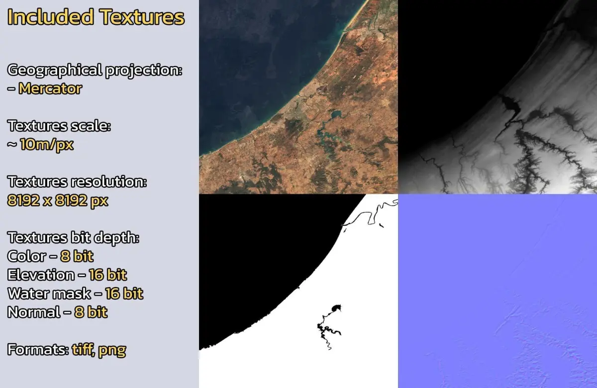 - Textures resolution: ~10m/px