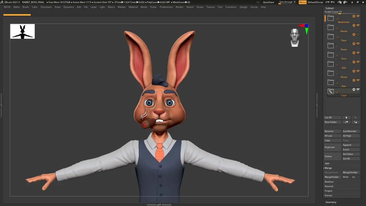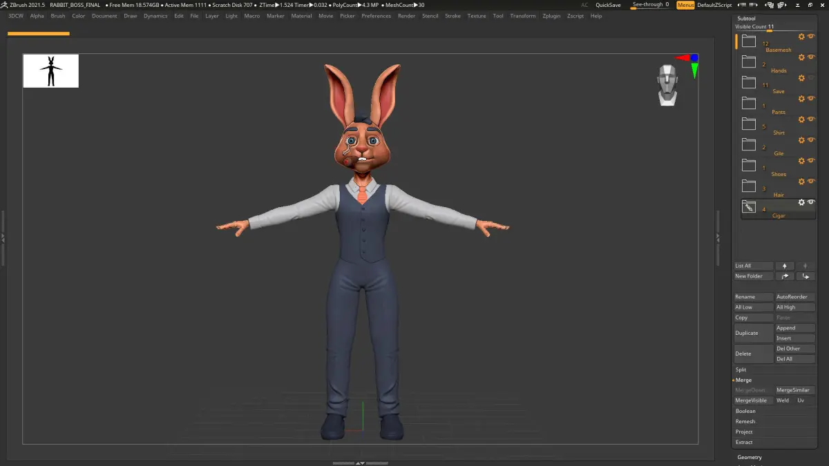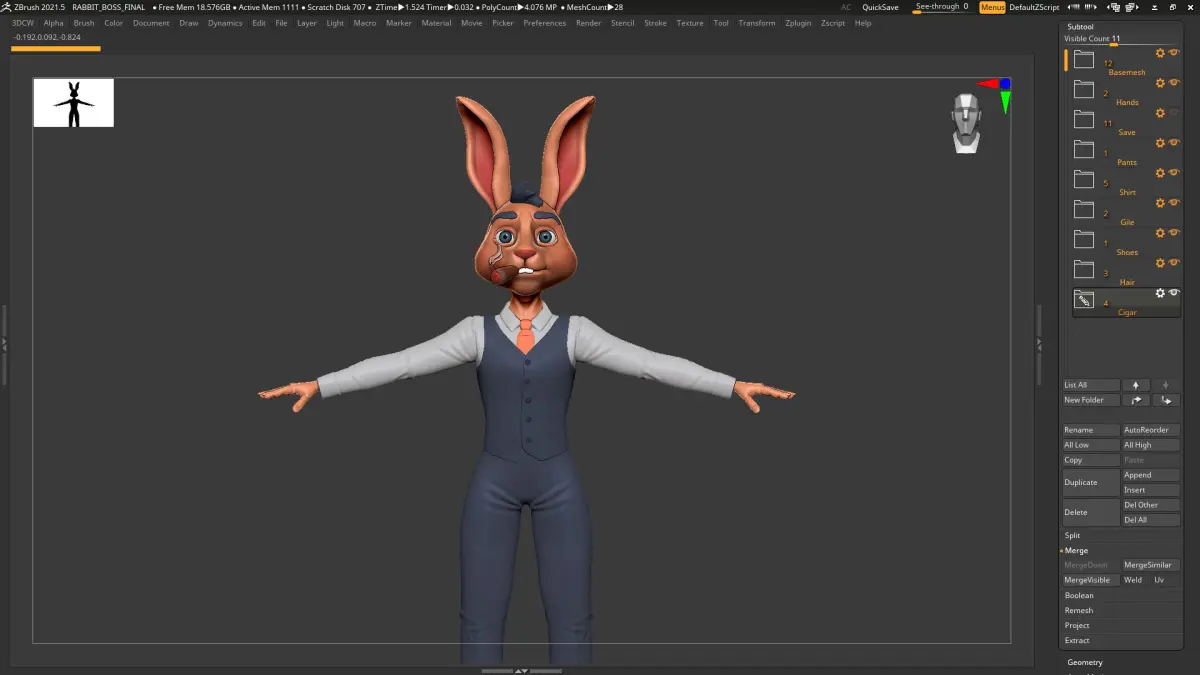 Rabbit Boss Basemesh - Character Design in ZBrush 3D model