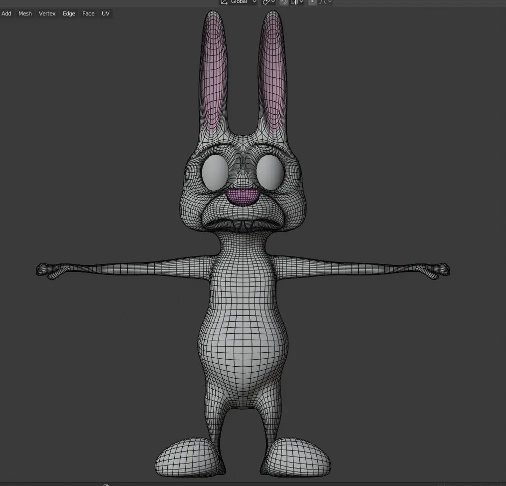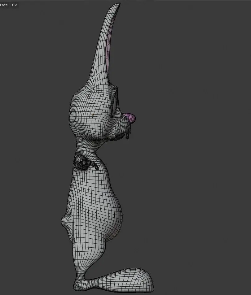 Only mesh with no UV and no Rig. Character is not complicated. Has 17K vertex. Originally made in Blender. Has procedural materials, not counting eyes. Easy for rigging from his T-pose, low-poly. Detailed fingers, simple legs.
