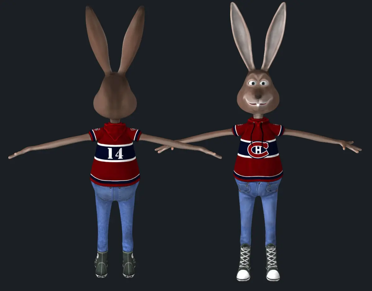 Cartoon Rabbit. Model is skinned with 3ds Max biped. Ready for animation -- Originally created with 3DSMax 2013 -- ( 3dsMax(.max) and OBJ(.obj))