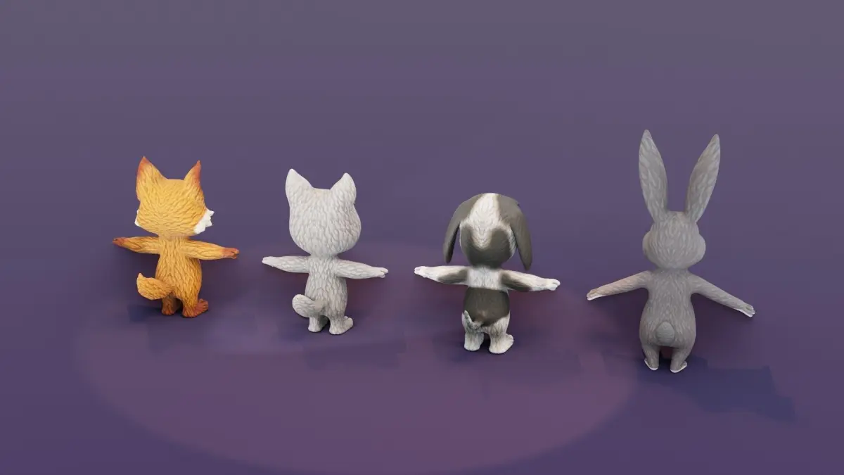 - Rabbit - 7,968 Polygons | 7,922 Vertices | 6 animations: idle, idle (eating), talk, walk, run, jump