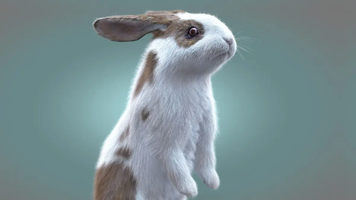 High Detailed Realistic Rabbit (spotted) ;FULLY RIGGED and ANIMATED, UVunwrapped, made with Maya. Xgen (CORE) for grooming – no plugins needed.