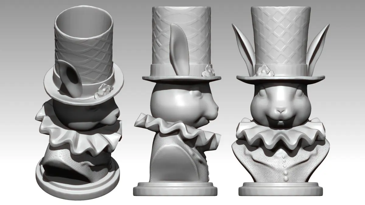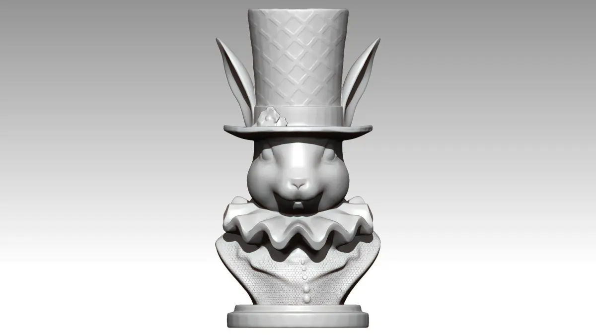 High Detailed 3d Bunny vase with suit and something around its neck and a hat and a hole for putting things