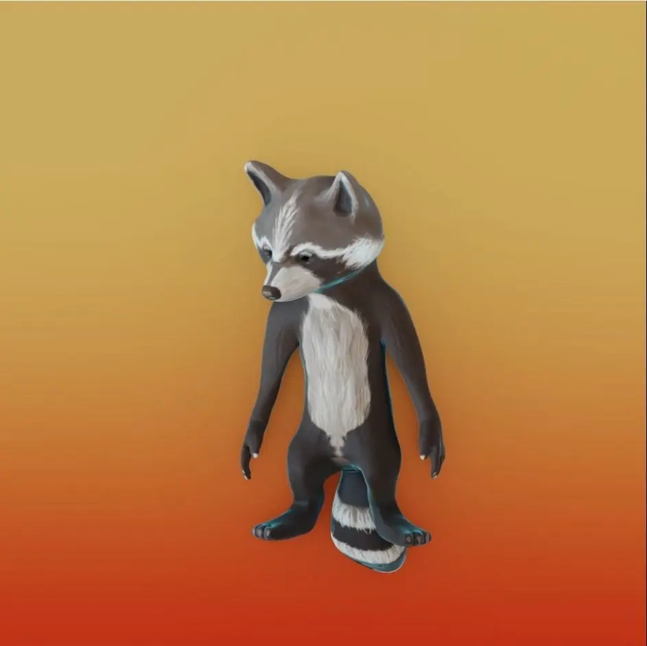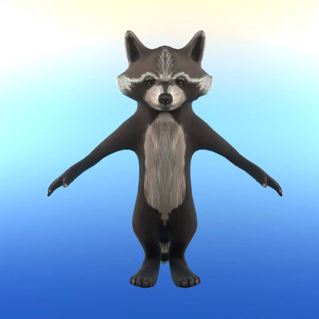 Raccoon model,made in casual style,has only two texture maps,base color,mormal map.Without rig, but the grid is made for animation