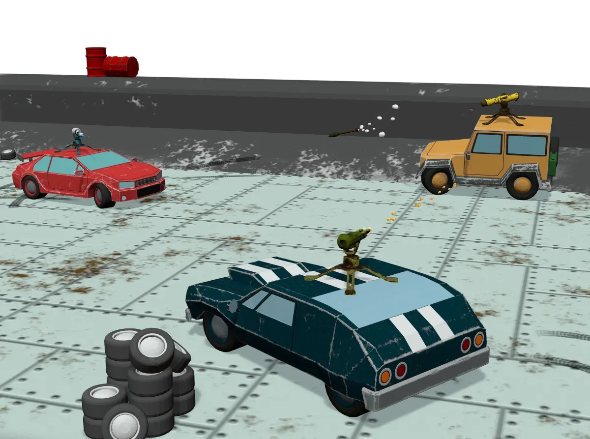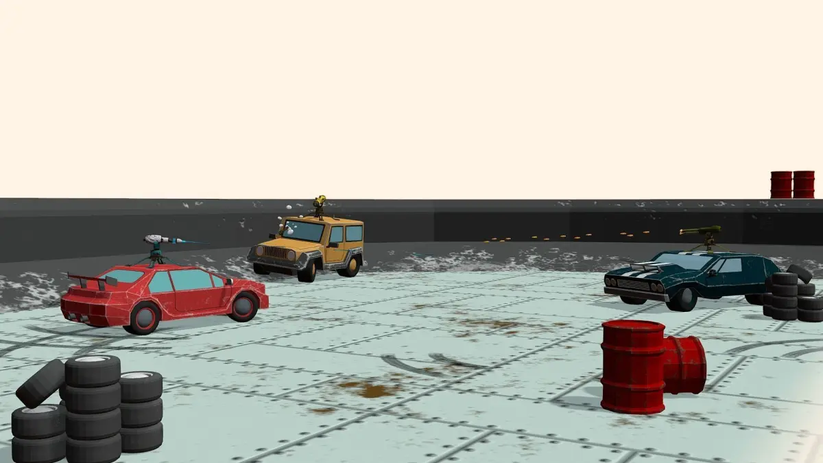 Low-poly style racing arena. It is a game-ready asset with a low polygon count to be used in demolition derbies or races, Blur or flat-out style games. It has damage and rust. The wheels and barrels as probs are in different groups and also available in Unity package, so just click and drag to use them or not in the game. You can see the Car Models with the Weapons in the pack.