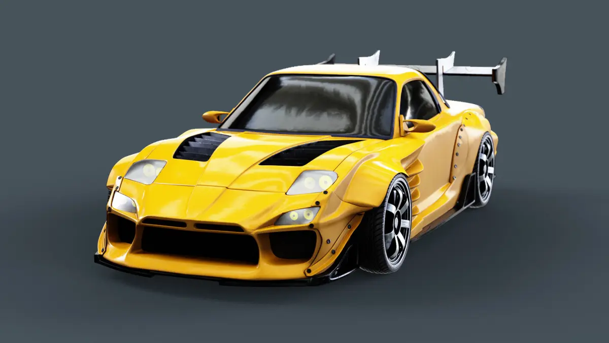The product is Mazda RX 7 exterior sports car body kit. The BN Sports edition is used as the reference image.