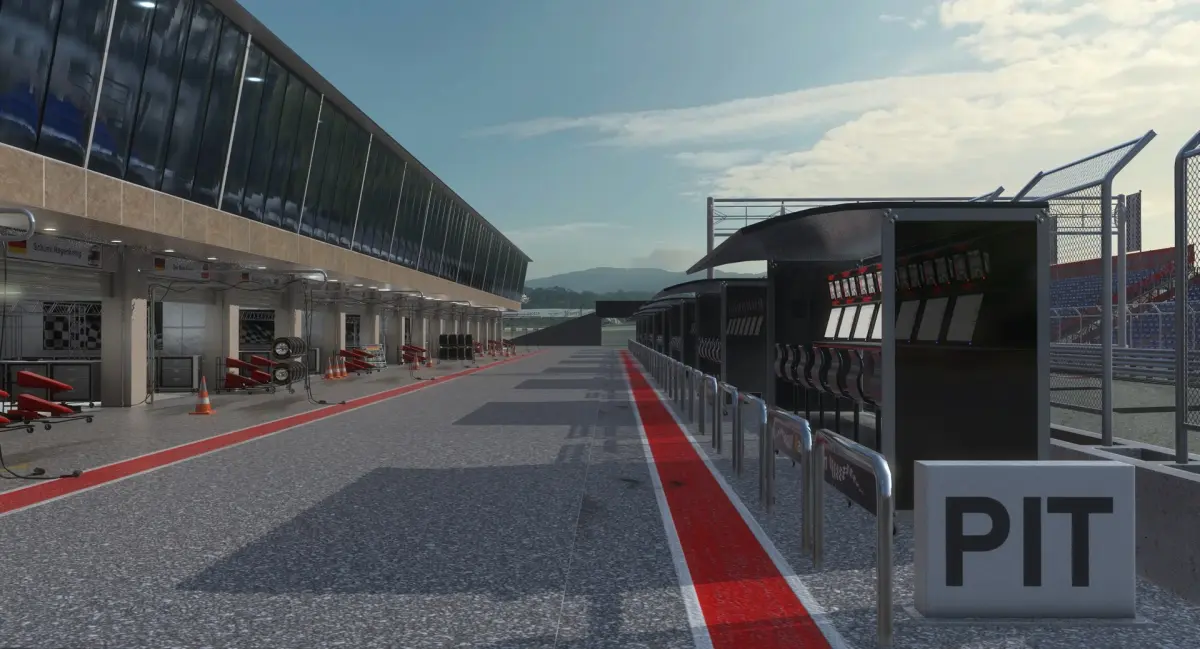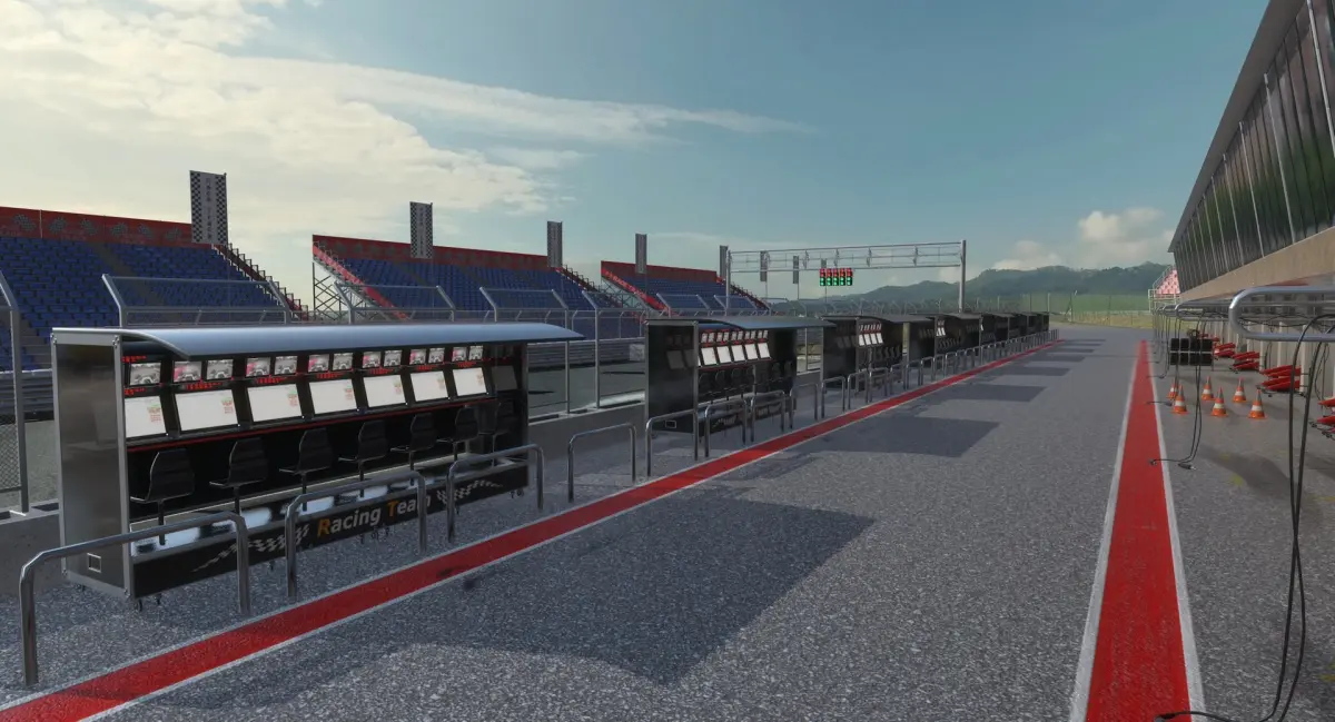 - race track pit lane garage building;