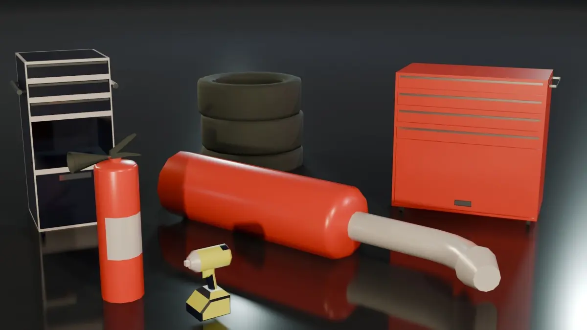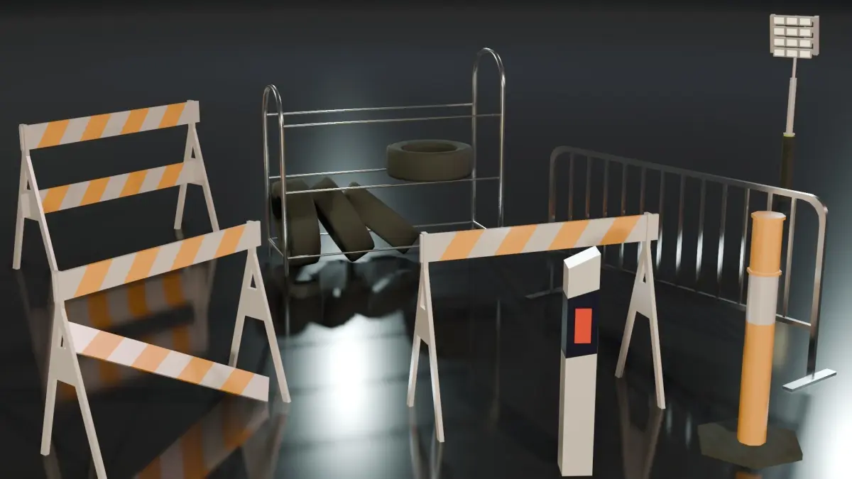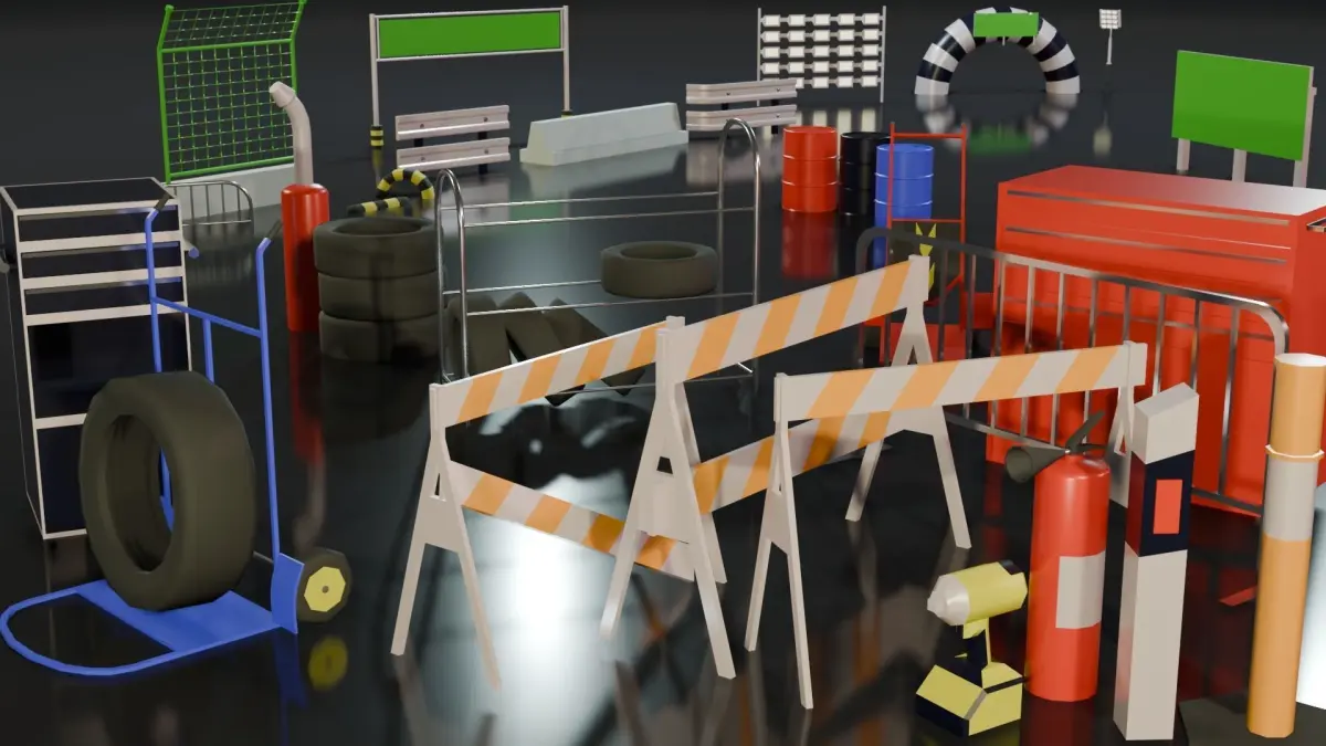 Gameready race track kit bash for your videogame or video. Royalty free. Conteins 30 items of track parts, instuments, light objects. Total spec: Verts 9975 Faces 9325 Tris 18558 UV Unwraped Formats; obj, fbx, blend Material - Colored Principled BSDF
