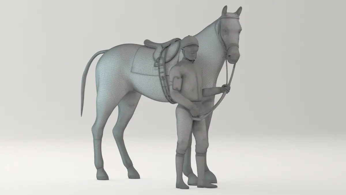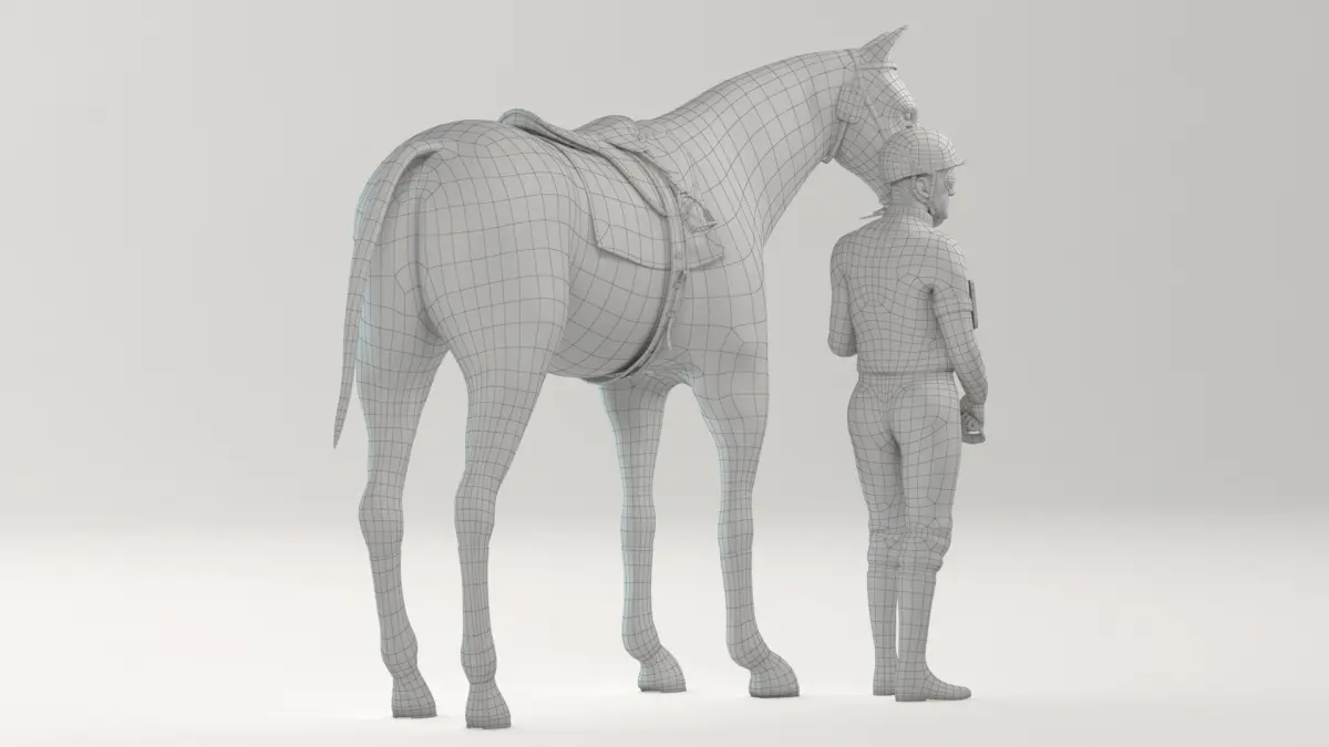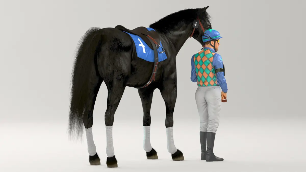 The horse model uses the V-Ray fur to simulate body hair, tail and mane