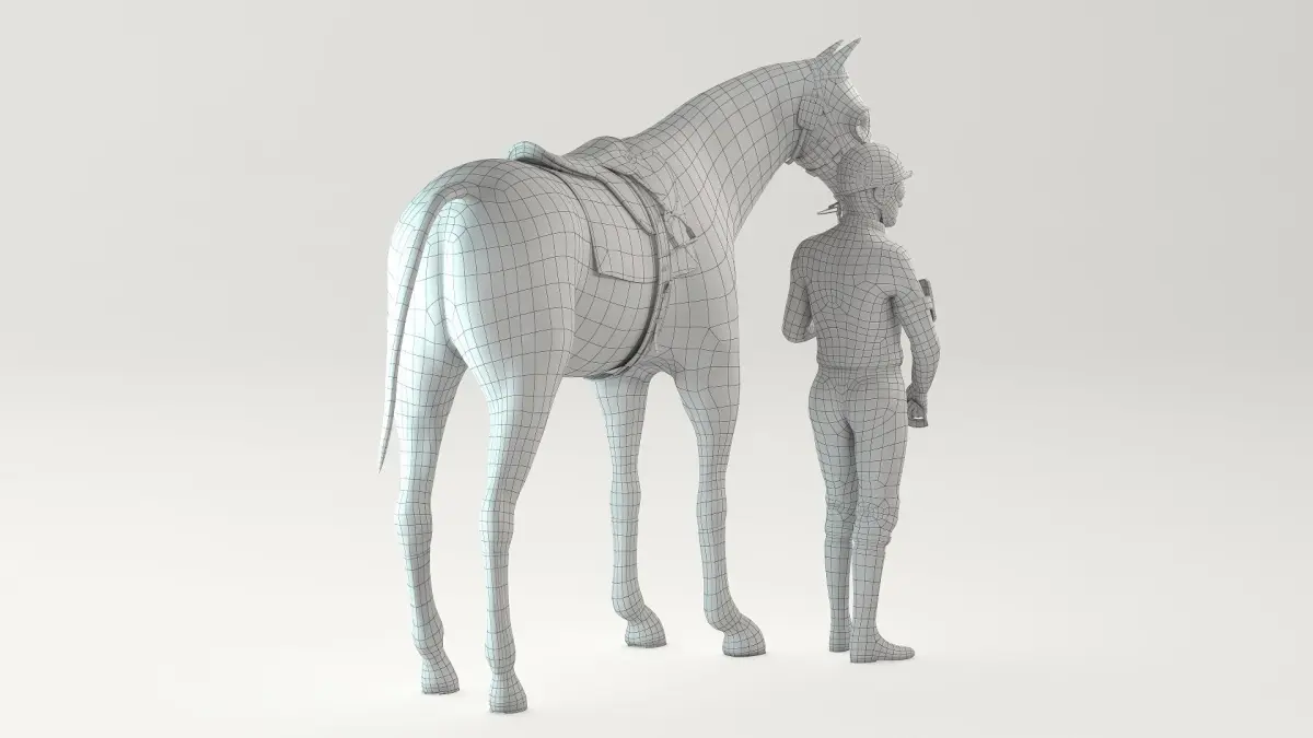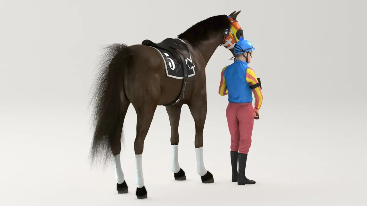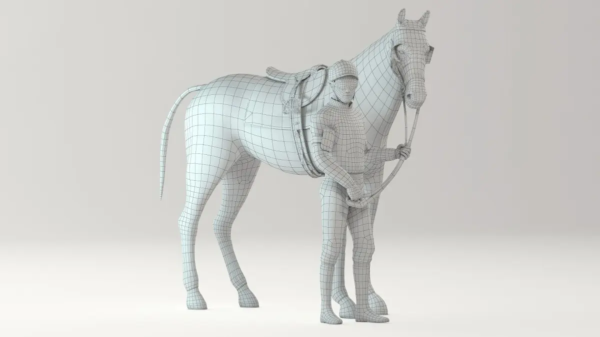The horse model uses the V-Ray fur to simulate body hair, tail and mane
