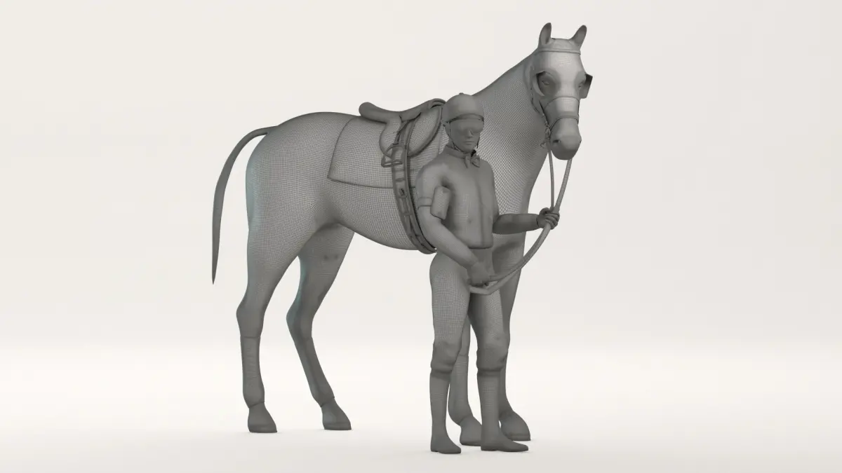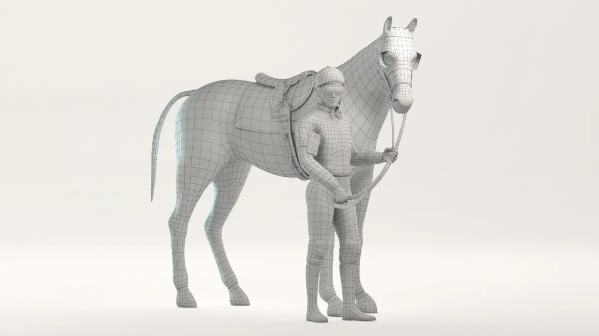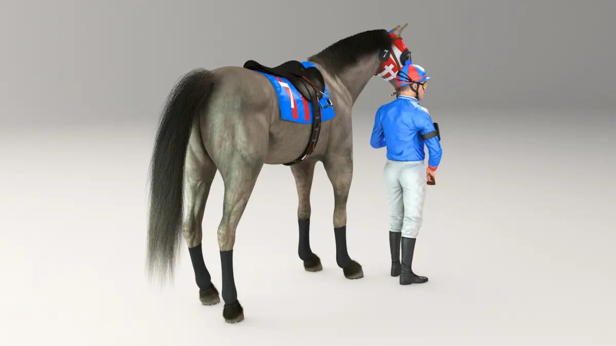 The horse model uses the V-Ray fur to simulate body hair, tail and mane