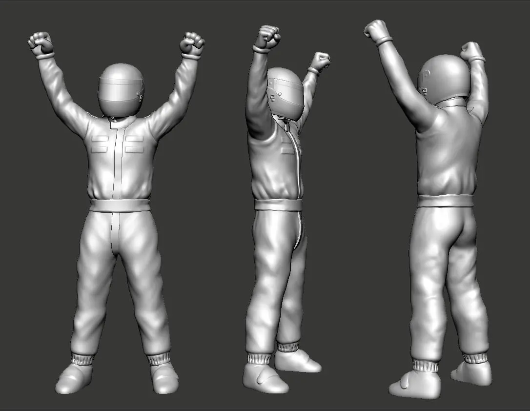3D model of a Race Car driver. 3D Print ready. Files are in stl format only. You can print the file according to the desired scale you want.