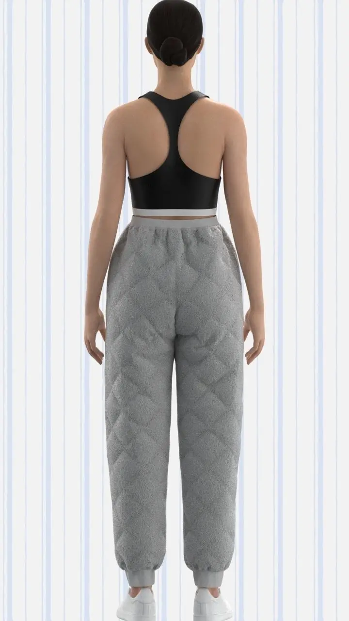 Ladies Racerback top and quilted trouser. Very High Quality Rendered. Made By Clo Standlone. This model has a low polycount . Includes various formats with realistic Wash effect textures and normal map. With Exotic texture you will see the wash effect on the body.** 2d CAD also provided. Ready Pattern for make actual product.** It can be used for animations, video games, WebGL, VR/AR, VFX, Obj, Presentation. ProviedFile Formates are Dxf,OBJ, FBX, Zprj, AI, Gltf, xml, mcx . Let me know if any support required in comment box.