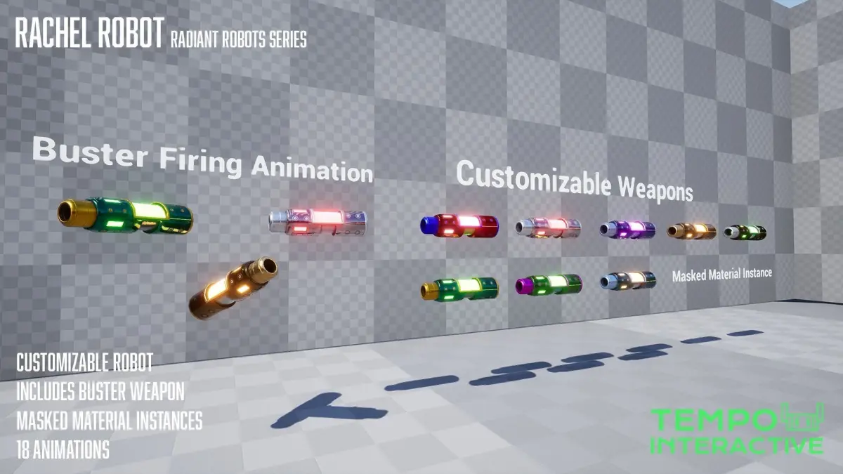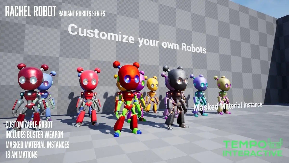 Customize and arm your own robot with a robust material instance to give your robot it's own unique paint job!