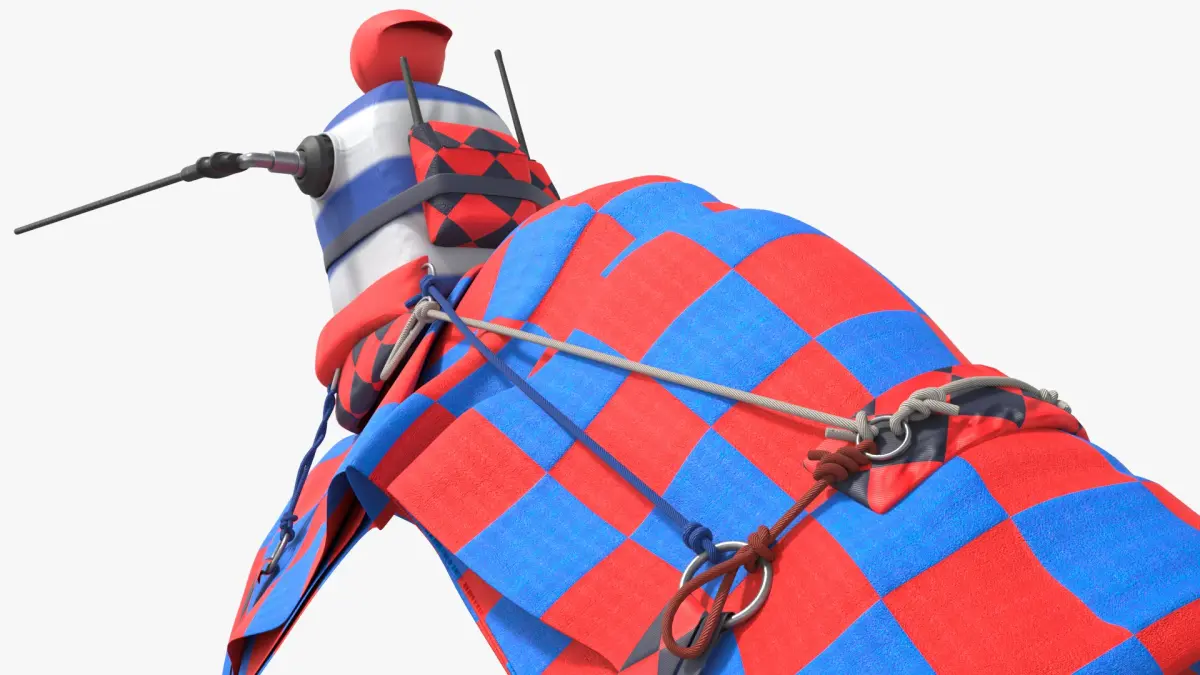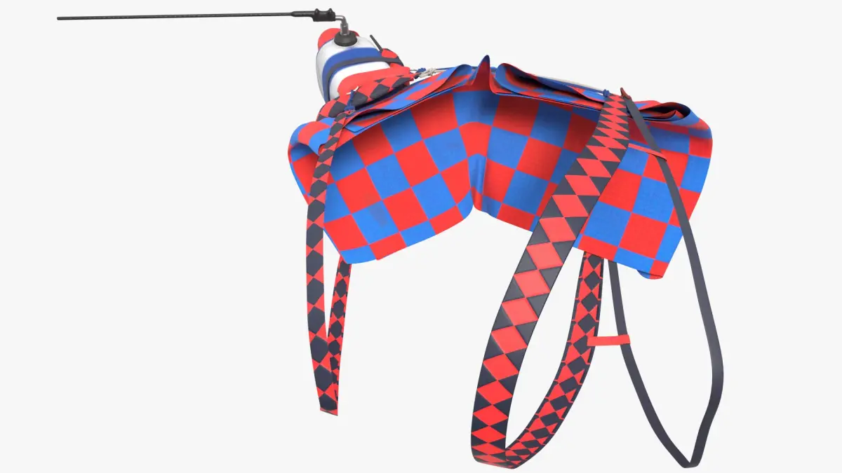 Racing Camel Gear with Patterned Straps is a three-dimensional model of camel racing outfit, also referred to as racing camel gear or a racing camel setup.