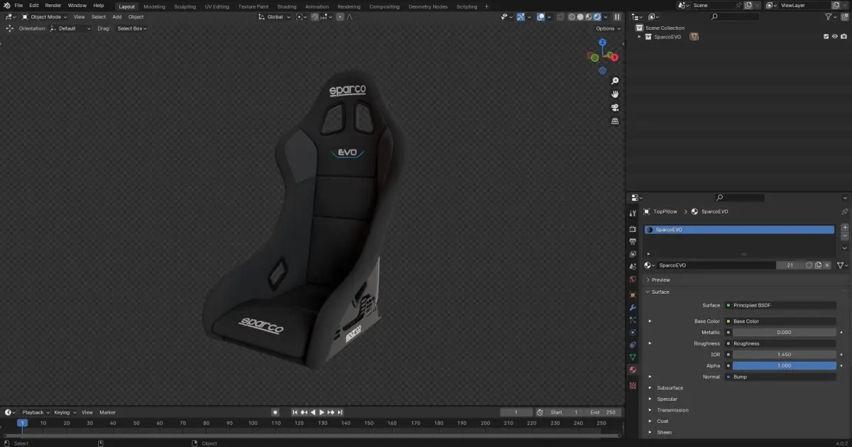 This is an accruate model of a Sparco EVO racing car seat, ready to put into any car model you have!