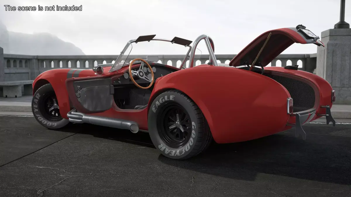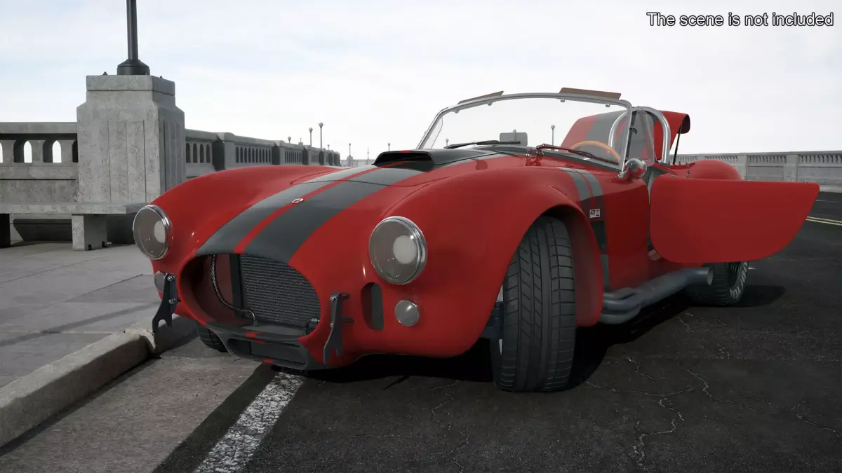 Racing Cobra Shelby 1965 Red Rigged is a three-dimensional model of AC Shelby 427 Cobra racing retro sports car, born in 1965, which is an luxury ancient 2-door body style roadster which epitomizes the golden era of American muscle cars.