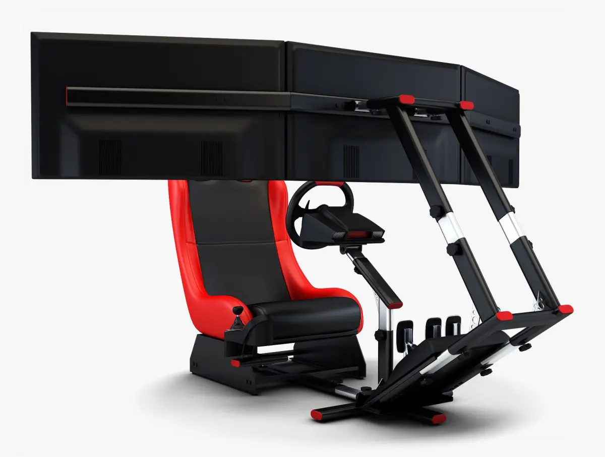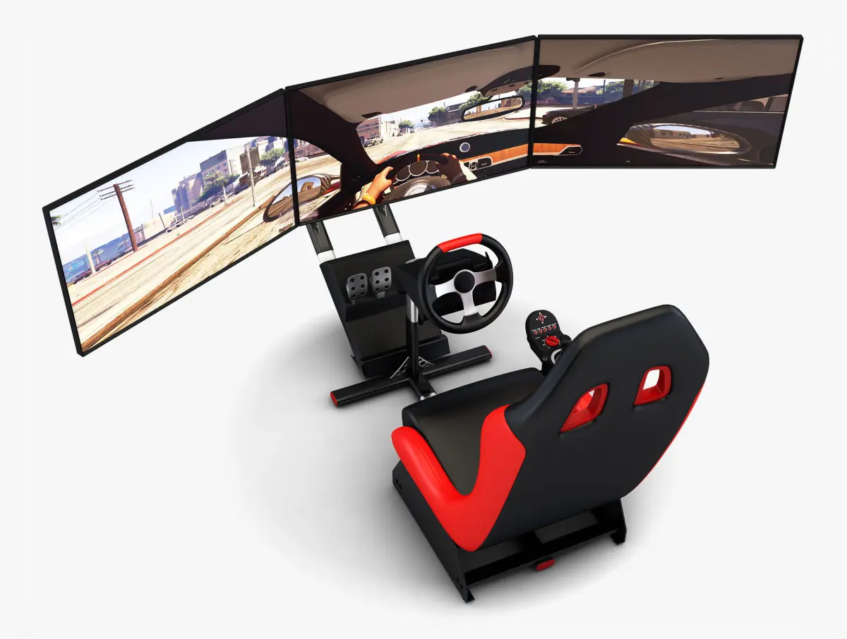 3D Model name: Racing Game Simulator Triple Display v 1This 3D Model can be use in different projects, for example: high-quality renders, illustrations, video clips, videos or film industry, etc. The 3D model was made by polygonal method, the details were carefully worked out. Materials included in the 3D model. Does not need for cleaning, just add the model to scene and start rendering.