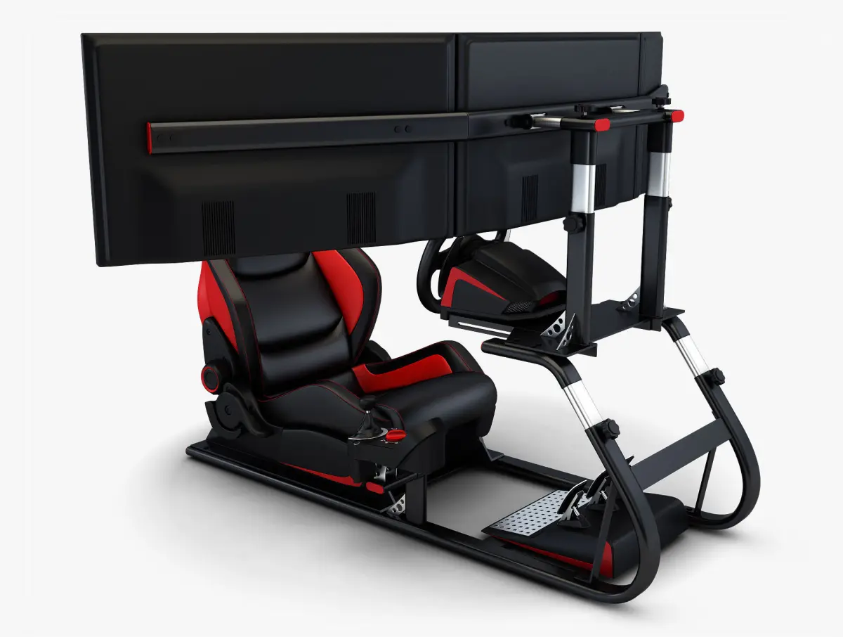 3D Model name: Racing Game Simulator Triple Display v 2This 3D Model can be use in different projects, for example: high-quality renders, illustrations, video clips, videos or film industry, etc. The 3D model was made by polygonal method, the details were carefully worked out. Materials included in the 3D model. Does not need for cleaning, just add the model to scene and start rendering.