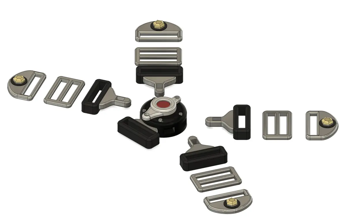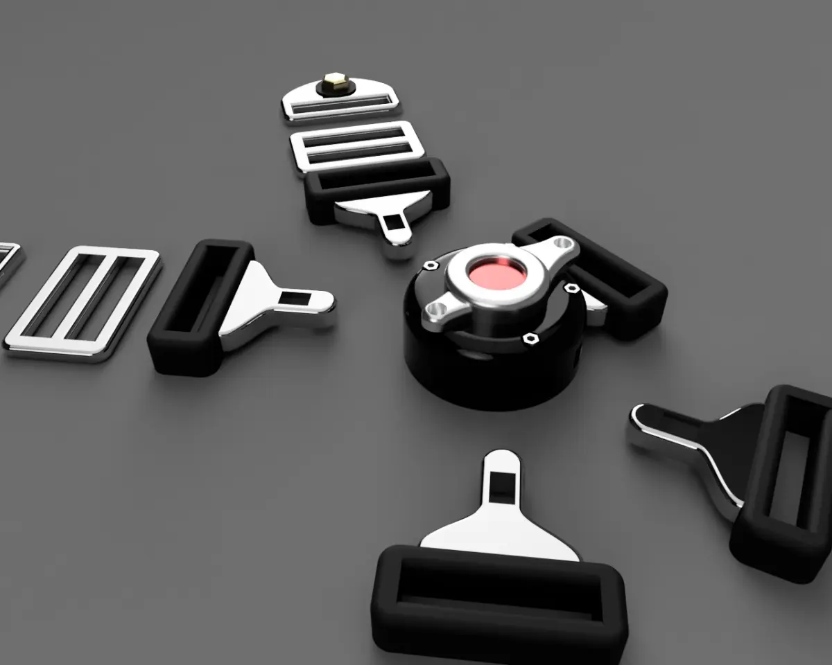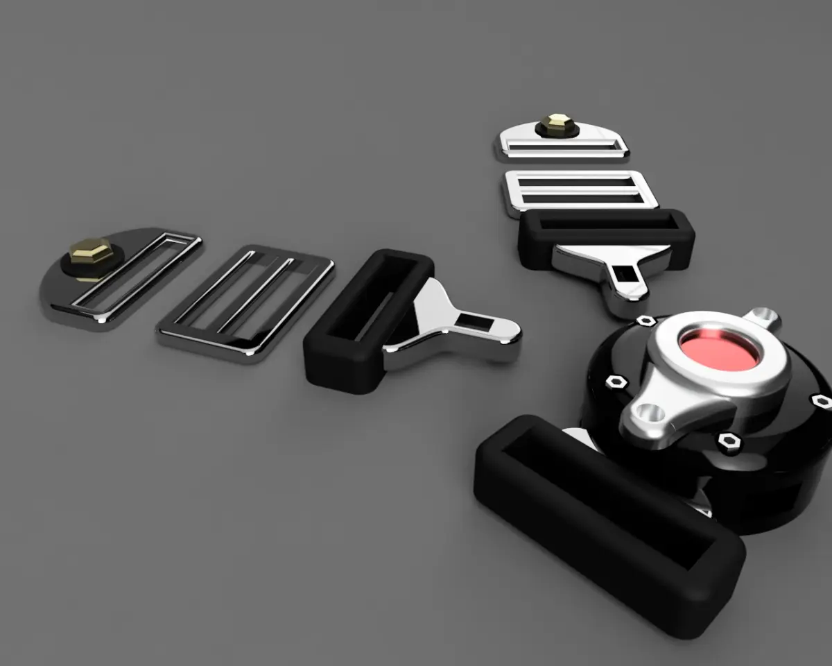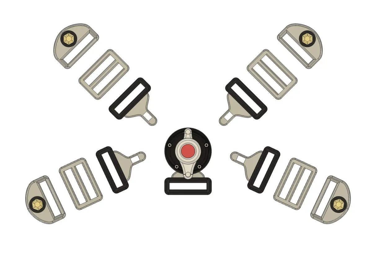 Seat belts for racing, drifting, competition cars, etc. This model is the 5 Point Harness.The design is proprietary, not downloaded from the internet and inspired by the most famous brands on the market.The file set consists of the central latch, belt buckle, belt body adjustments and belt chassis clips. You just need to add the ribbon that will represent the seat belt itselft.The files are in 1:24 scale.