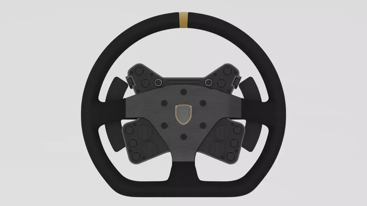 The button and shifter module is a custom The Sim Channel design and does not directly correspond to any real world product, although it reflects the size and features of comparable products in the market. It shares its visual concept with the shifter and handbrake sold separately (or as part of the full sim rig bundle).