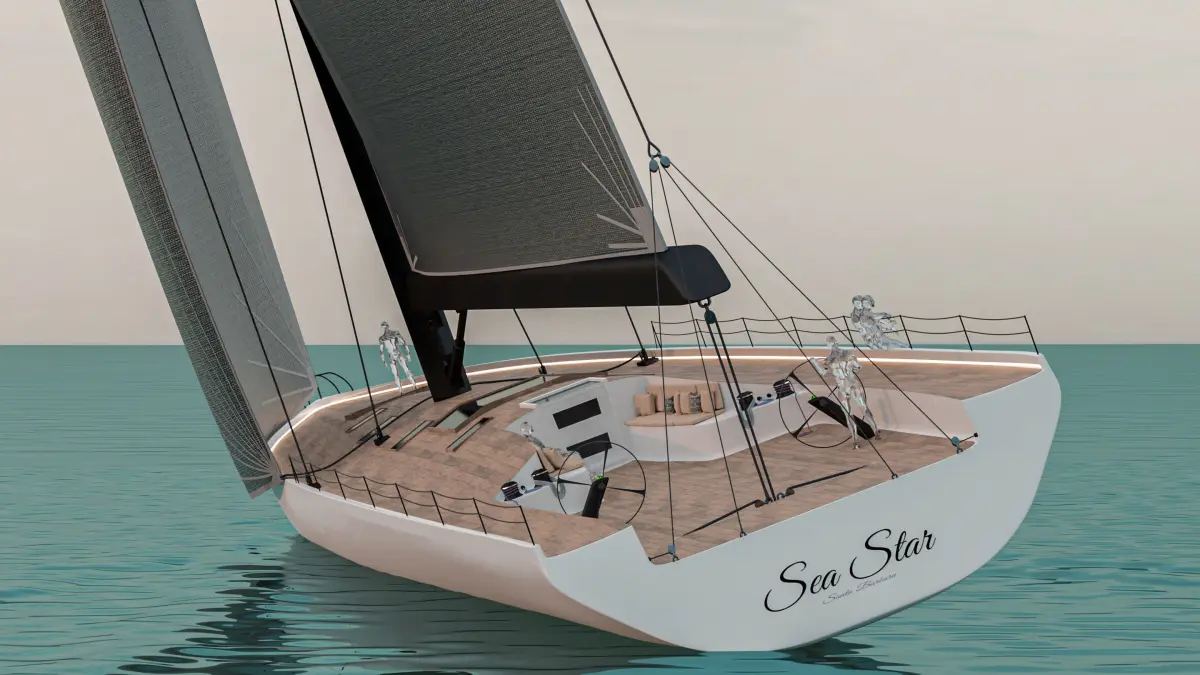 Custom luxury racing yacht designed and modeled by me.Features:Full detail rigging with lines of varying thickness as well as steel blocksSails come as rolled or rigged and in extremely high detaildeck windows with high detailspars are full metal with detailed vang and bracketsdual carbon steering wheels with compassescomfortable sitting areahigh detail lines in the cockpit with four large winches