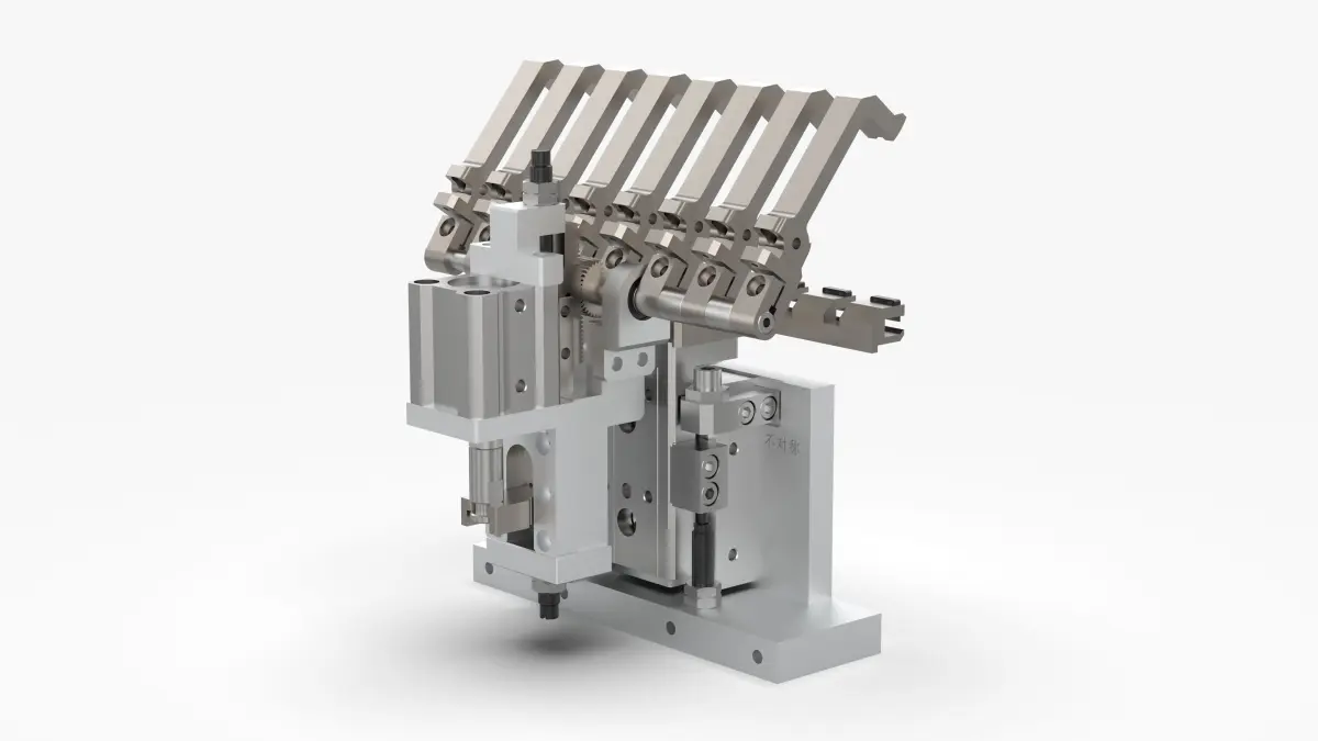 The rack-and-pinion-driven gripper mechanism is based on a thin cylinder that simply jacks up the rack-and-pinion transmission gripper handling mechanism. The Z-axis slide table cylinder moves up and down. After clamping the product or carrier, it can be lifted, which is very common. Non-standard automatic handling mechanism.