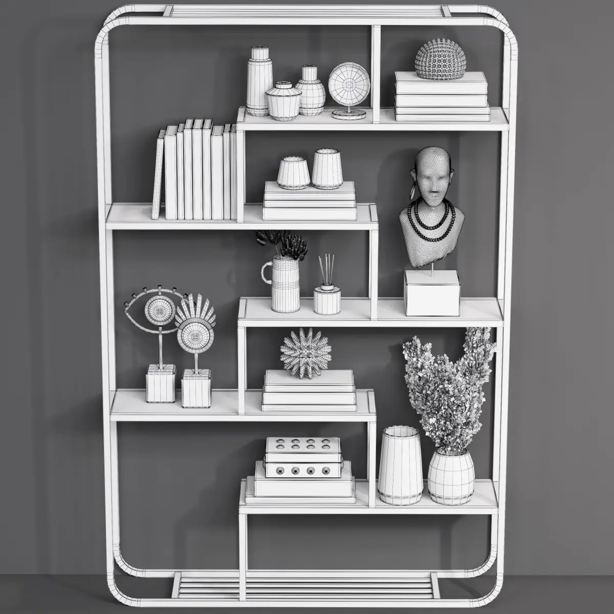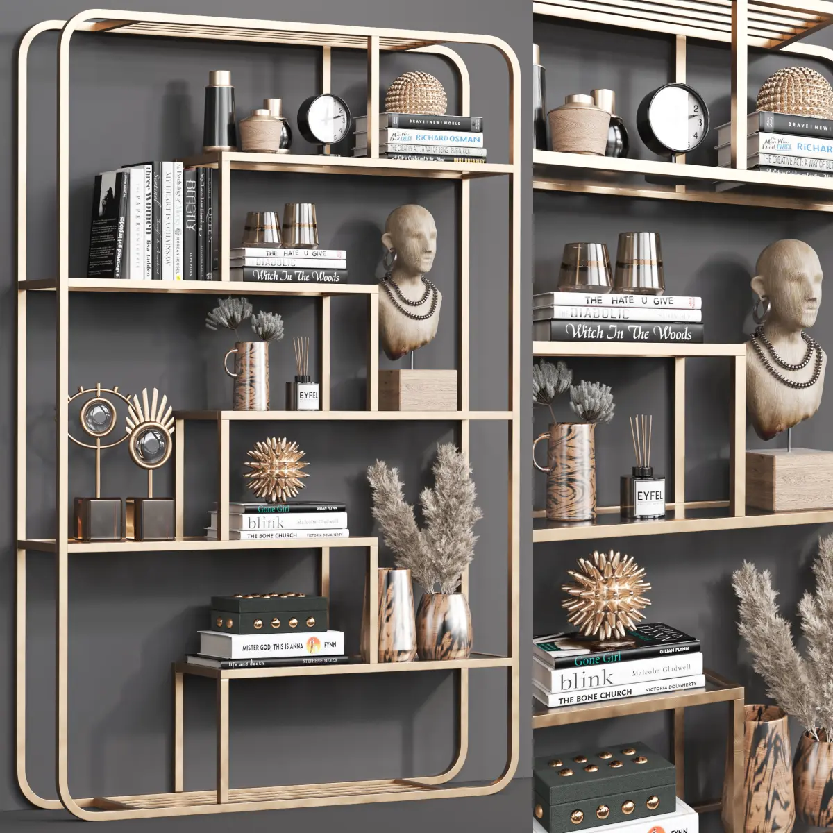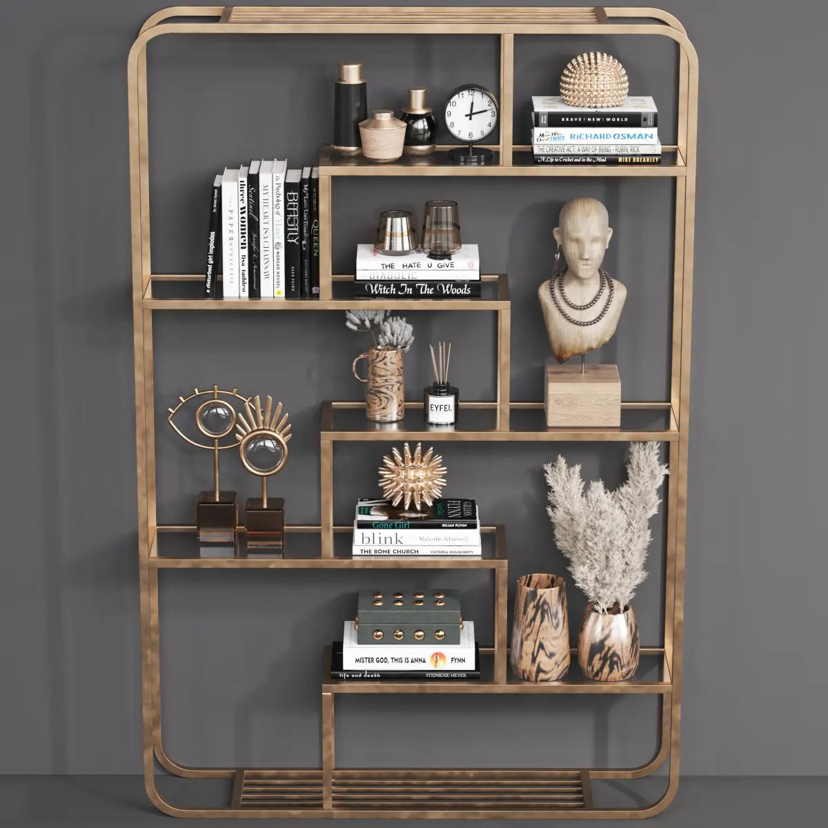 Golden floor furniture rack for bedroom, living room or hallway. Suitable for books, decor.