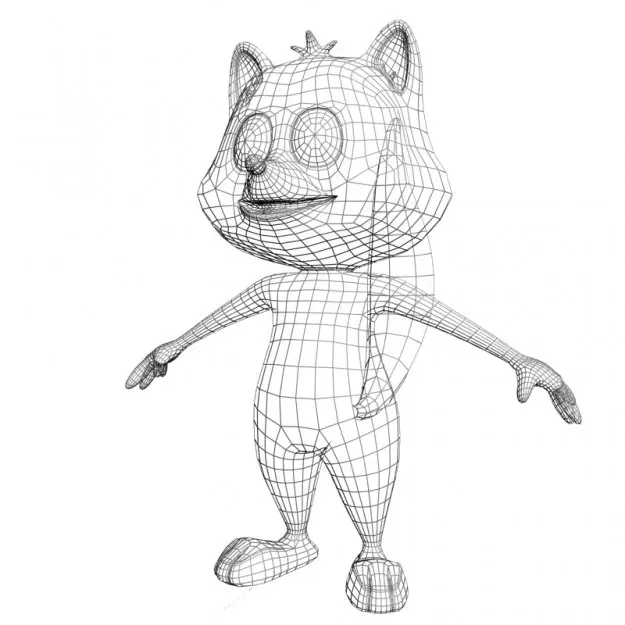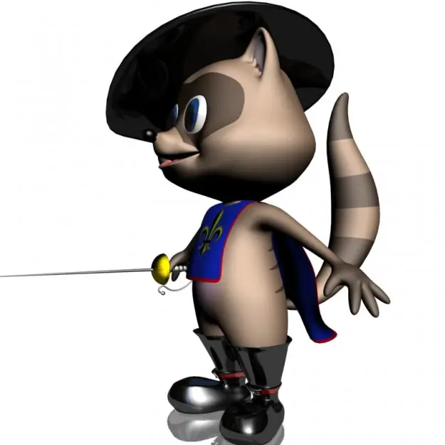 Low poly of a stylized cartoon racoon musketeer made with 3D Studio Max v8.