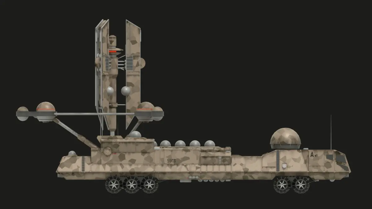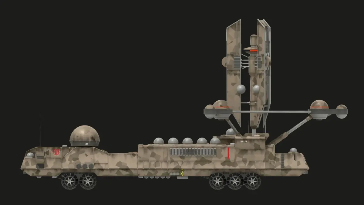Low poly model of a fictional rover vehicle, specialized on medium range detection and control, also for jamming and deception.