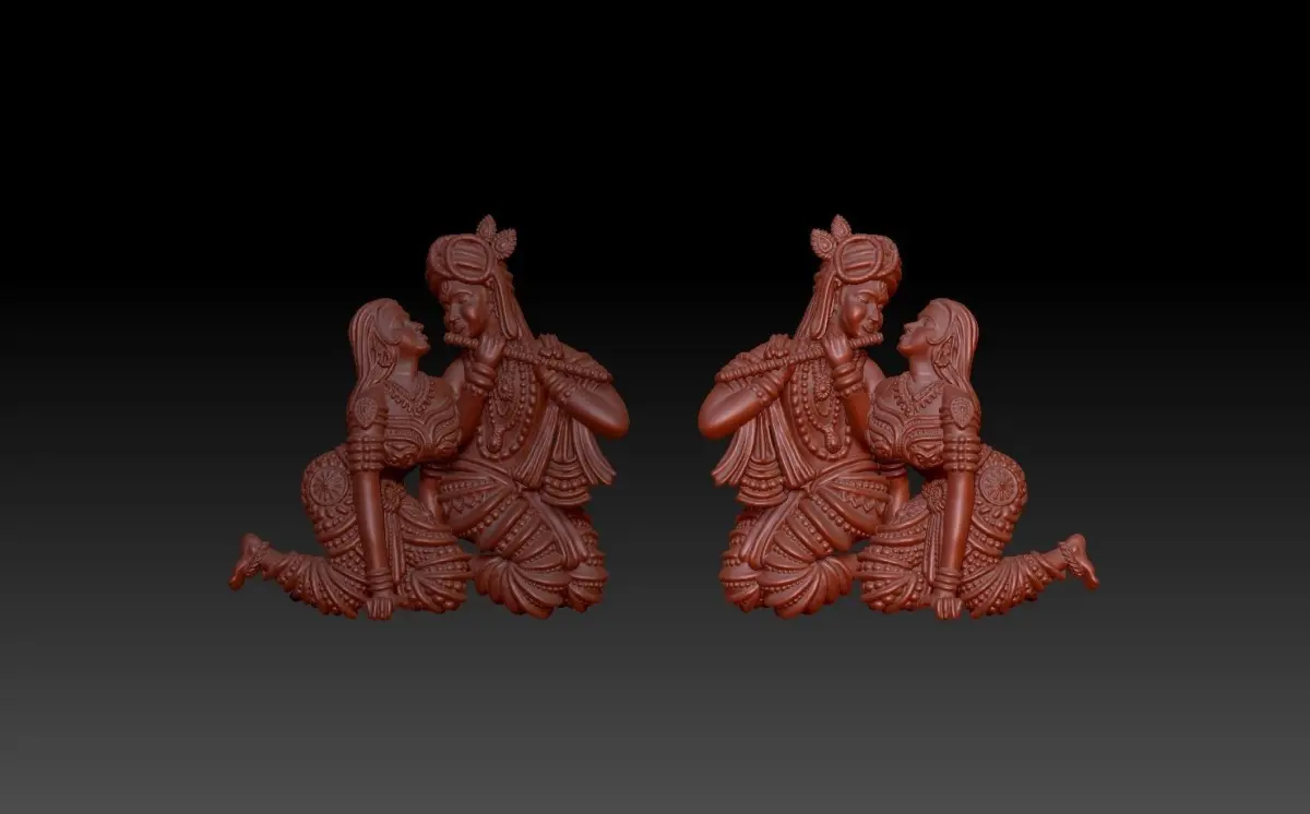Radha and Krishna Pendant in a sitting posture. Very romantic pose. Both pendant and earring sizes available. Ready to Print. Thickness 0.4mmVery LightweightPendant size 34mmEarring Size 24mm
