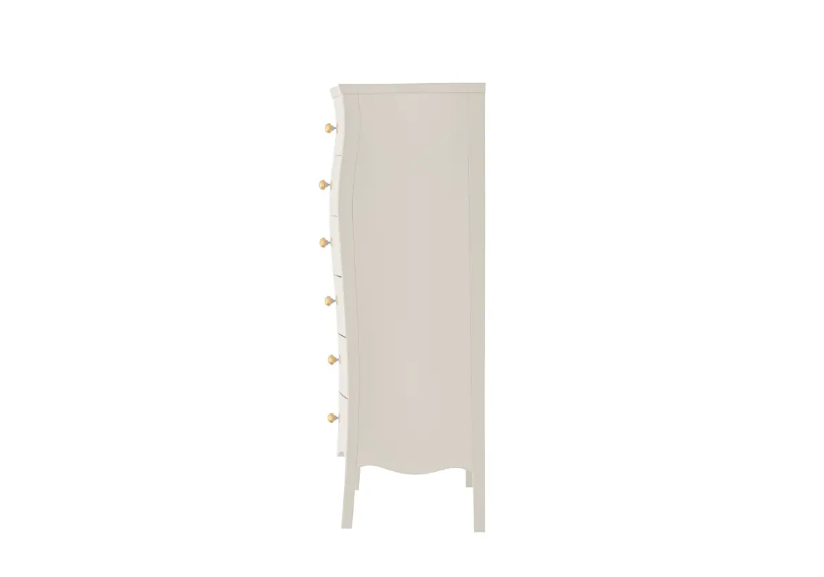 Discover the elegance of the Radiant Chest of Drawers. Featuring a softly curved vertical form, this chest offers a refined and modern silhouette. The six spacious drawers provide ample storage. Adorned with six gold handles, the Radiant chest of drawers adds a touch of brilliance and sophistication. Ideal for those who value both aesthetic beauty and practical design, this chest brings a radiant touch of luxury to your home.