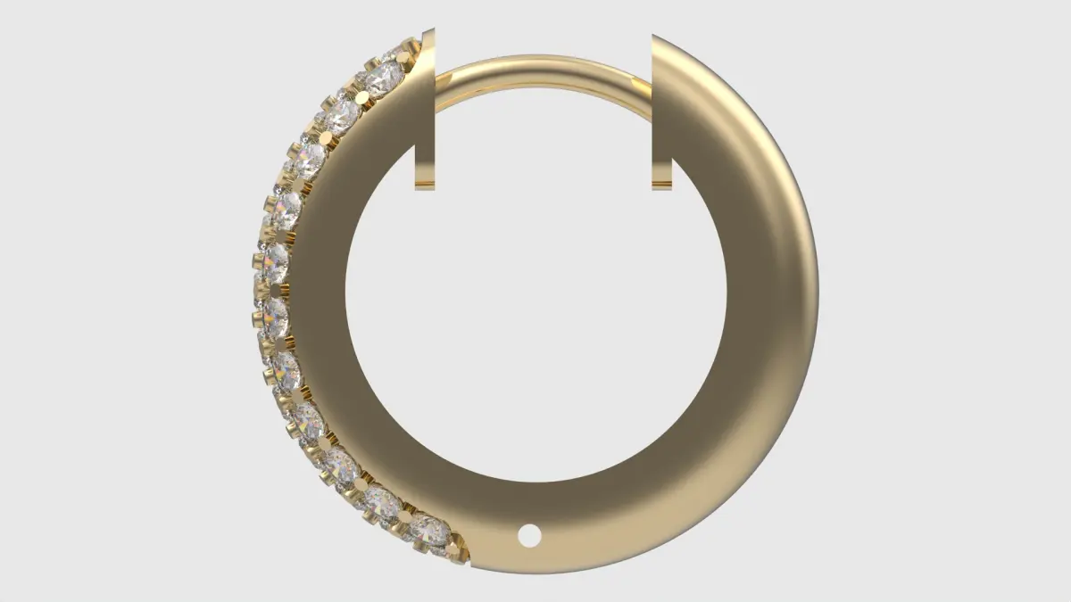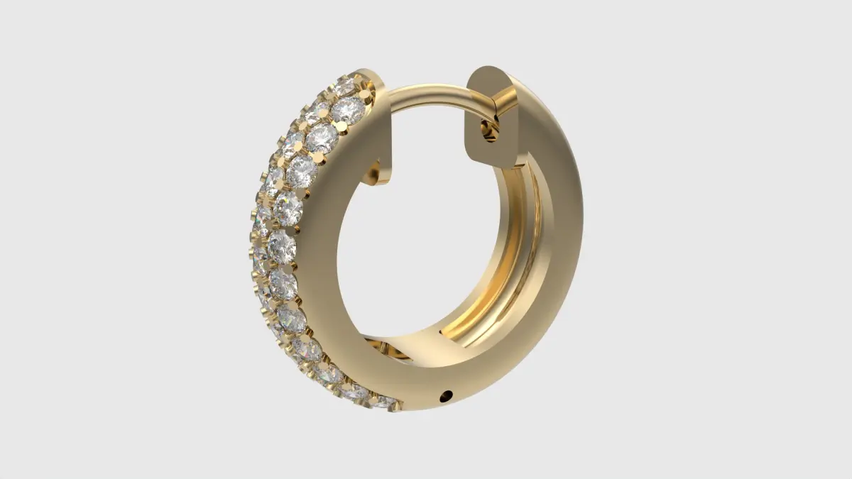 Discover the allure of our Radiant Hinged Hoop Earrings, designed to captivate and enchant. This exquisite piece combines elegance and innovation with its unique hinged design, offering both style and functionality. The earrings are adorned with sparkling accents that beautifully catch the light from every angle, creating a dazzling display of brilliance. Perfect for those who appreciate contemporary elegance, this ring makes an ideal choice for special occasions or as a statement accessory in your everyday collection. Its versatile design ensures it complements any outfit, adding a touch of sophistication and charm.