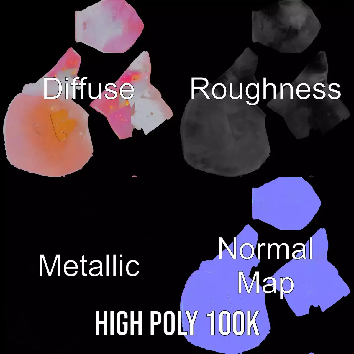 This Radiant Pink Gemstone model pack features a beautifully faceted gemstone that glows with a warm inner light, making it perfect for fantasy settings, jewelry design, or high-end decor visualizations. Each model has 3 levels of detail: low-poly(1000 triangles for mobile), middle-poly(10 000 triangles for environment), and high-poly(100 000 triangles), which allows for the use of this model in production rendering(such as 3ds max, Maya,Cinema4d, Blender, Vray/Corona/Cycles and all other), game engines(Unity and Unreal compatible), and interactive presentations, providing a choice of detail based on the LOD System principle. The model's textures are PBR, Diffuse, NormalMap, and reflection/roughness/metallic, suitable for any modern rendering engine. All models accurately unwrapped and has no overlapping UV. All textures are 4096*4096 in size.