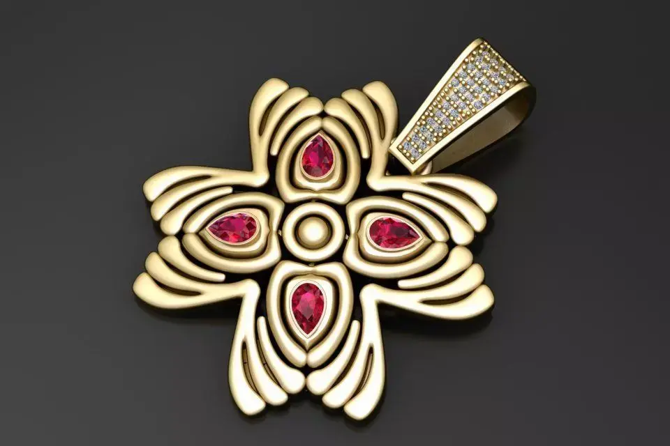 This Radiant Ruby Blossom Pendant is a stunning 3D printable jewelry model featuring an elegant floral design with five pear-cut gemstone seats. Sculpted with layered, flowing petal patterns and a pavé-set bail, this pendant blends luxury, artistry, and modern fine-jewelry aesthetics—perfect for gold, silver, or resin casting.