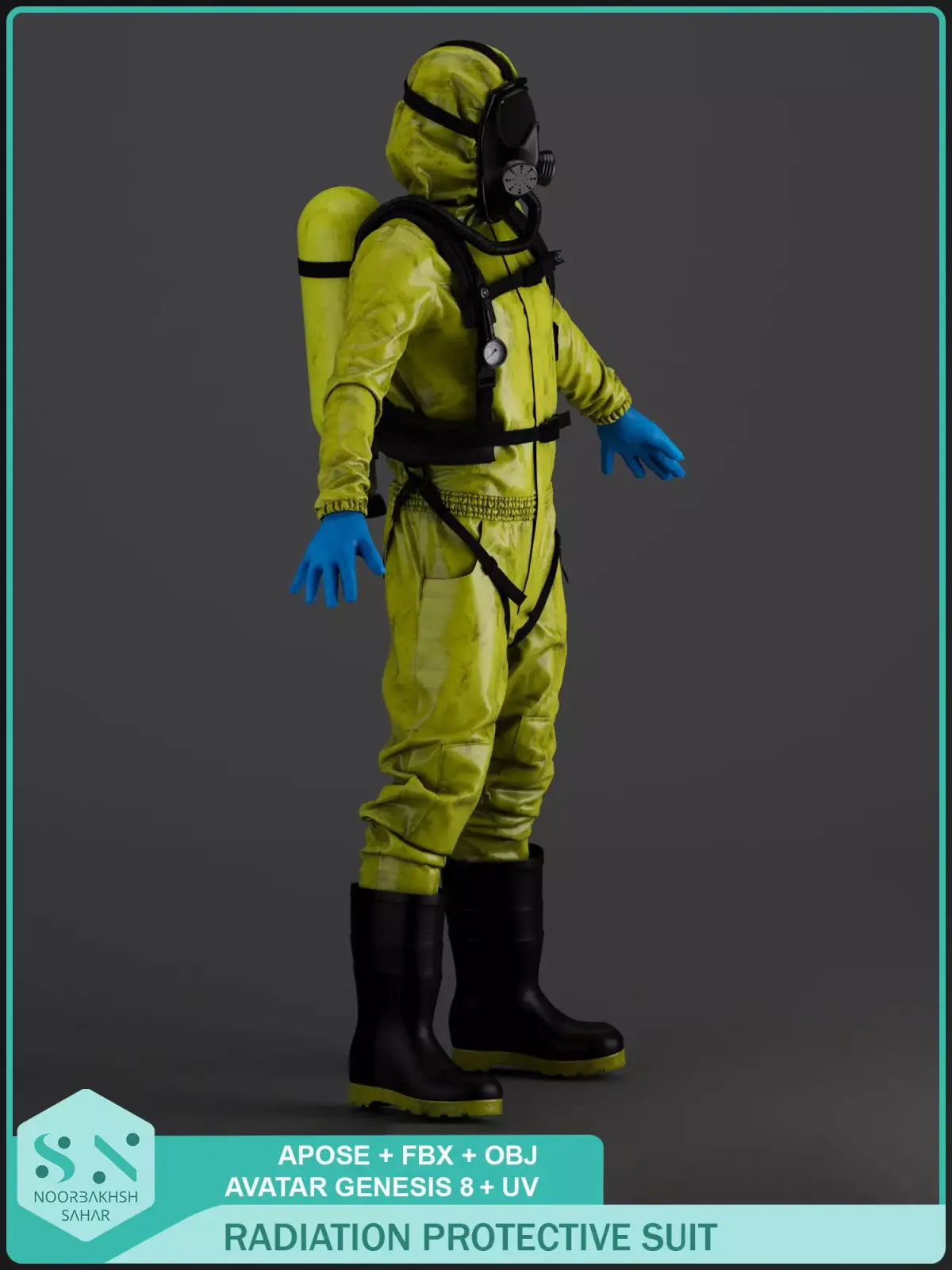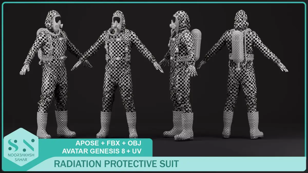 RADIATION PROTECTIVE SUIT3D Modeled by Sahar NoorbakhshRADIATION PROTECTIVE SUITOVERALL & VEST & GLOVES MODELED IN CLO3D/ MARVELOUS DESIGNEROXYGEN CAPSULE & FACE MASK & BOOT MODELED IN 3Ds MAXINCLUDE:RADIATION PROTECTIVE SUIT ( BOLER SUIT , OXYGEN CAPSULE VEST , GLOVES ,FACE MASK , BOOT)OUTPUT For each one: