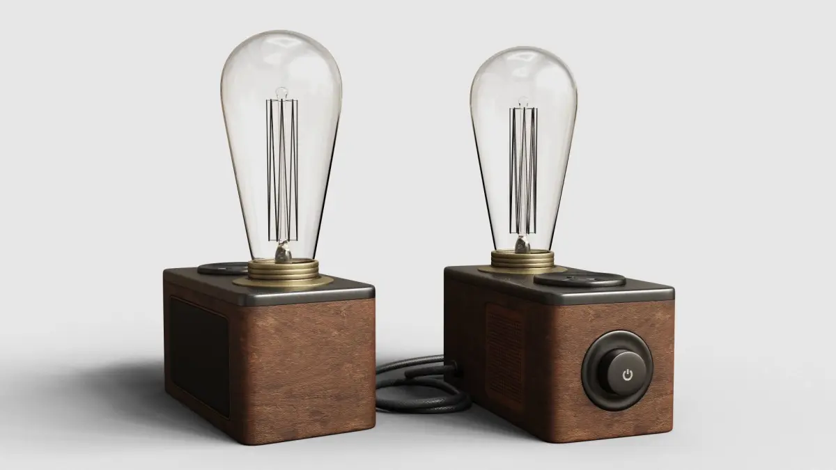 Industrial style table lamp with integrated radio. Ideal for decorating interior spaces such as galleries or offices.