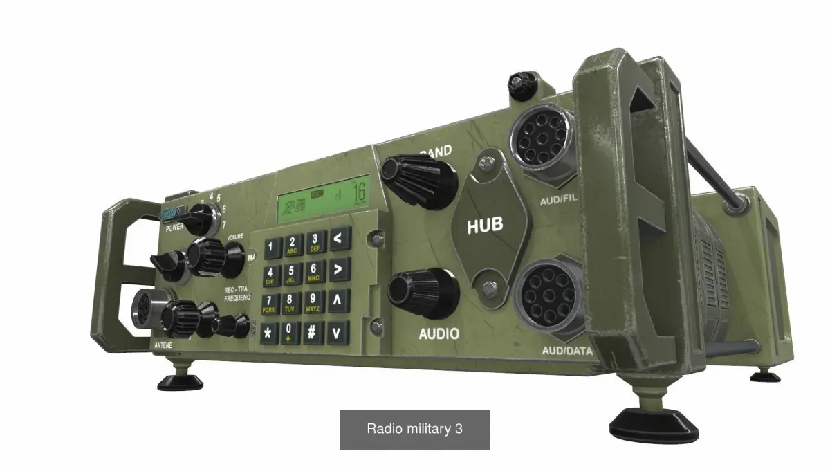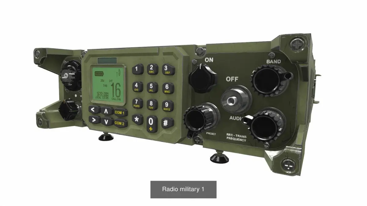 The model Radio military is located in zero coordinates. UVW mapping created, all textures are in the zip archiveThe model Radio military was created in 3Ds Max and textured in 3D coat. Previews of the model Radio military are made in the Marmoset Toolbag program.
