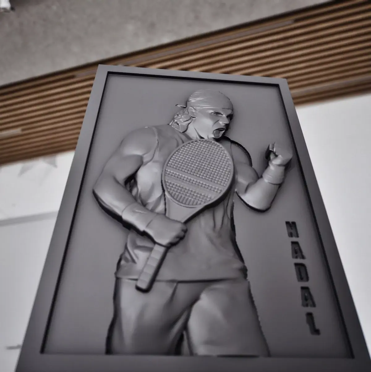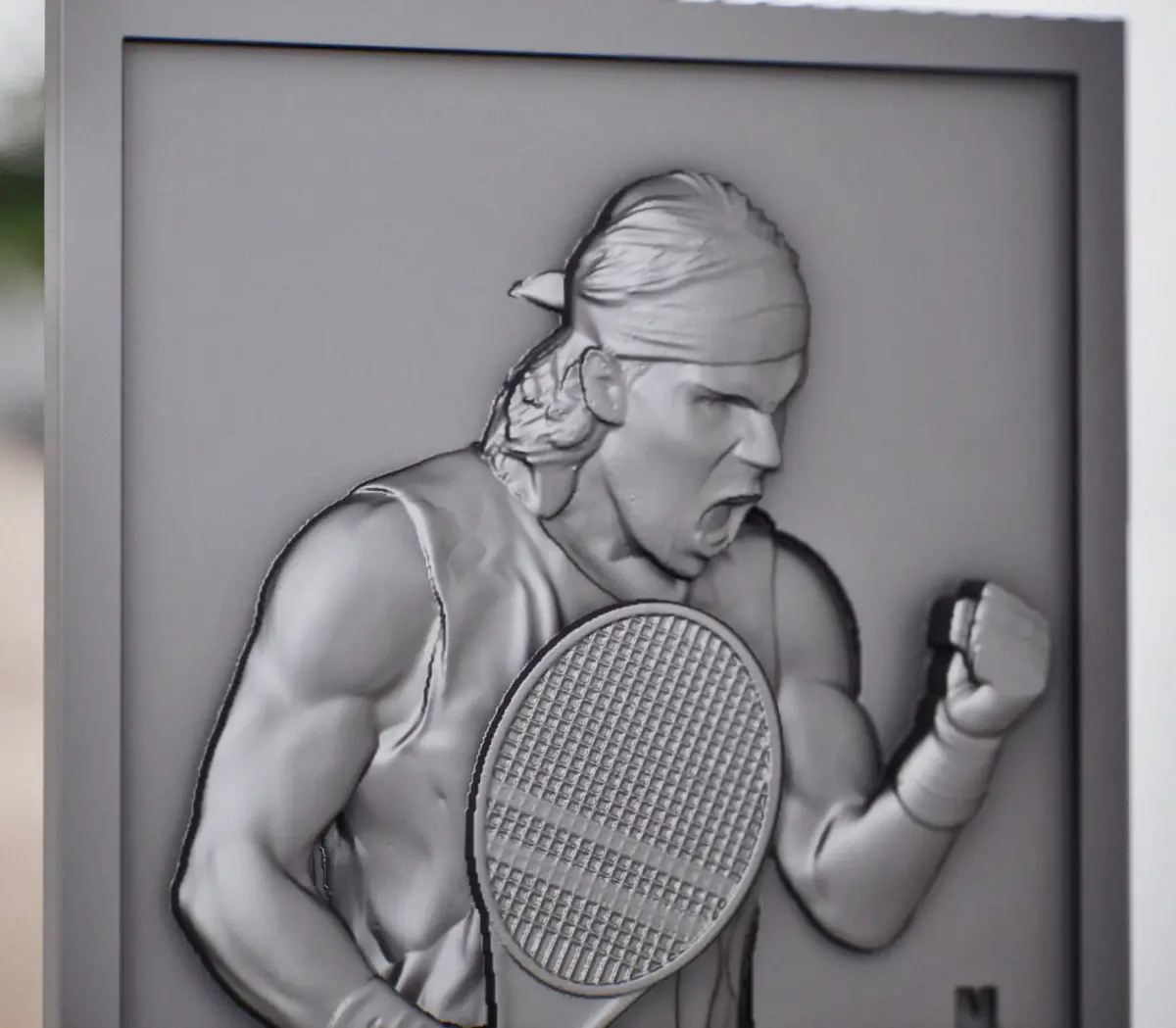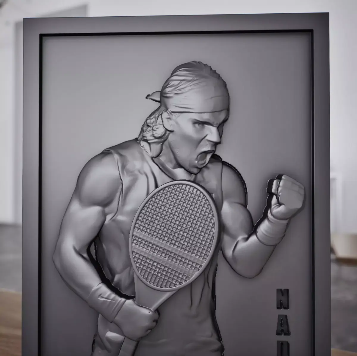 This 3D model captures the energy of Spanish tennis champion Rafael Nadal's performance.It's a single, solid piece, designed for easy printing, which makes it perfect for both beginners and 3D printing experts.