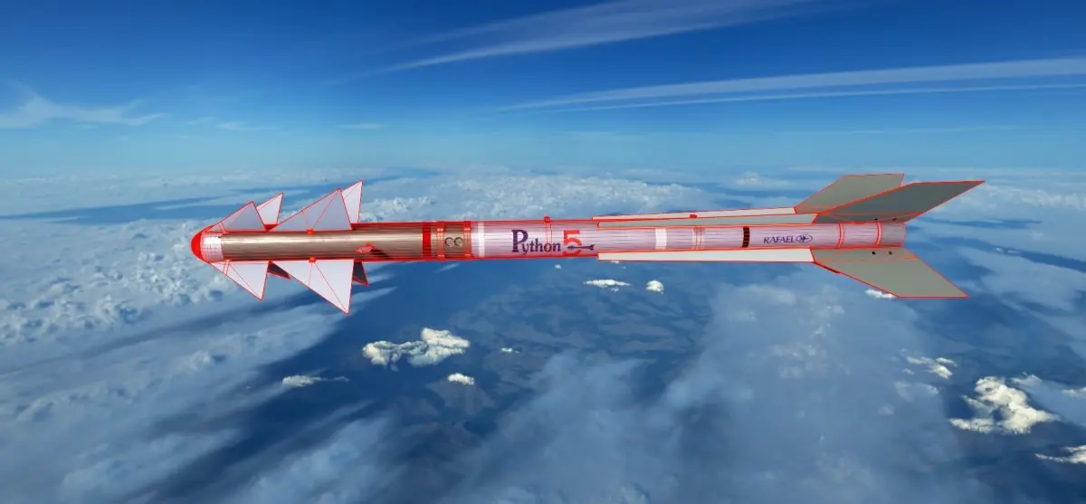 “The Rafael Python is a family of air-to-air missiles (AAMs) built by the Israeli weapons manufacturer Rafael Advanced Defense Systems, formerly RAFAEL Armament Development Authority. Originally starting with the Shafrir (Hebrew: שפריר, loosely translated as a dome, or a protective cloak — the Israeli military considers itself mostly defensive, but also similar sounding to Dragonfly, a male form of inflection for Damselfly (שפירית)) series, the Shafrir-1 missile was developed in 1959, followed by the Shafrir-2 in early 1970s.”