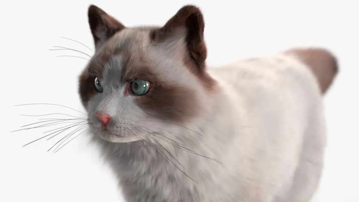 Ragdoll Cat Fur for Cinema 4D is a three-dimensional model of Ragdoll, which is a large and affectionate domestic cat breed known for its striking blue eyes, semi-long silky fur, and gentle temperament.