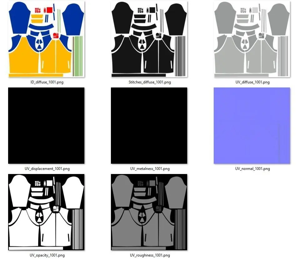OBJ (OBJ, filesize: 42.1 MB), ZPAC (Marvelous Designer, filesize: 8.92 MB), FBX (Autodesk FBX, filesize: 13.5 MB), TEXTURES (Textures, filesize: 70.7 MB)