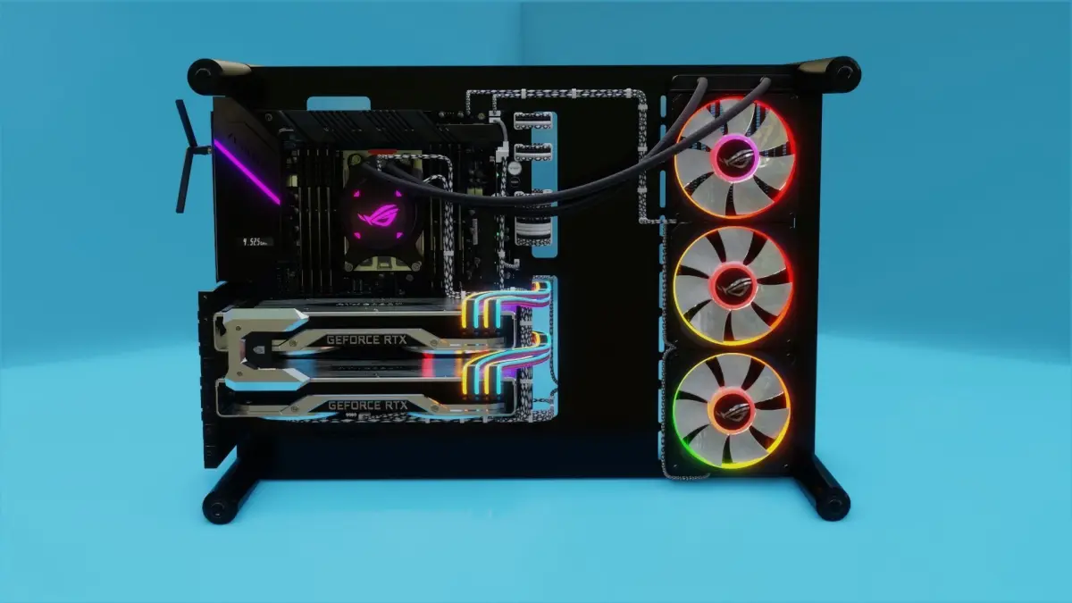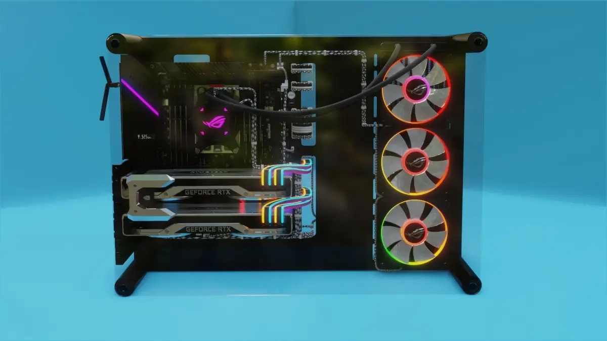 A high tech desktop computer with 3X M.2 SSD, two Nvidia GEFORCE RTX 2080ti and RYZEN TREADRIPPER. there are already 5000 frames animated with the RGB light and the fans.-High quality polygonal model, correctly scaled for an accurate representation of the original object. Support upto 4K