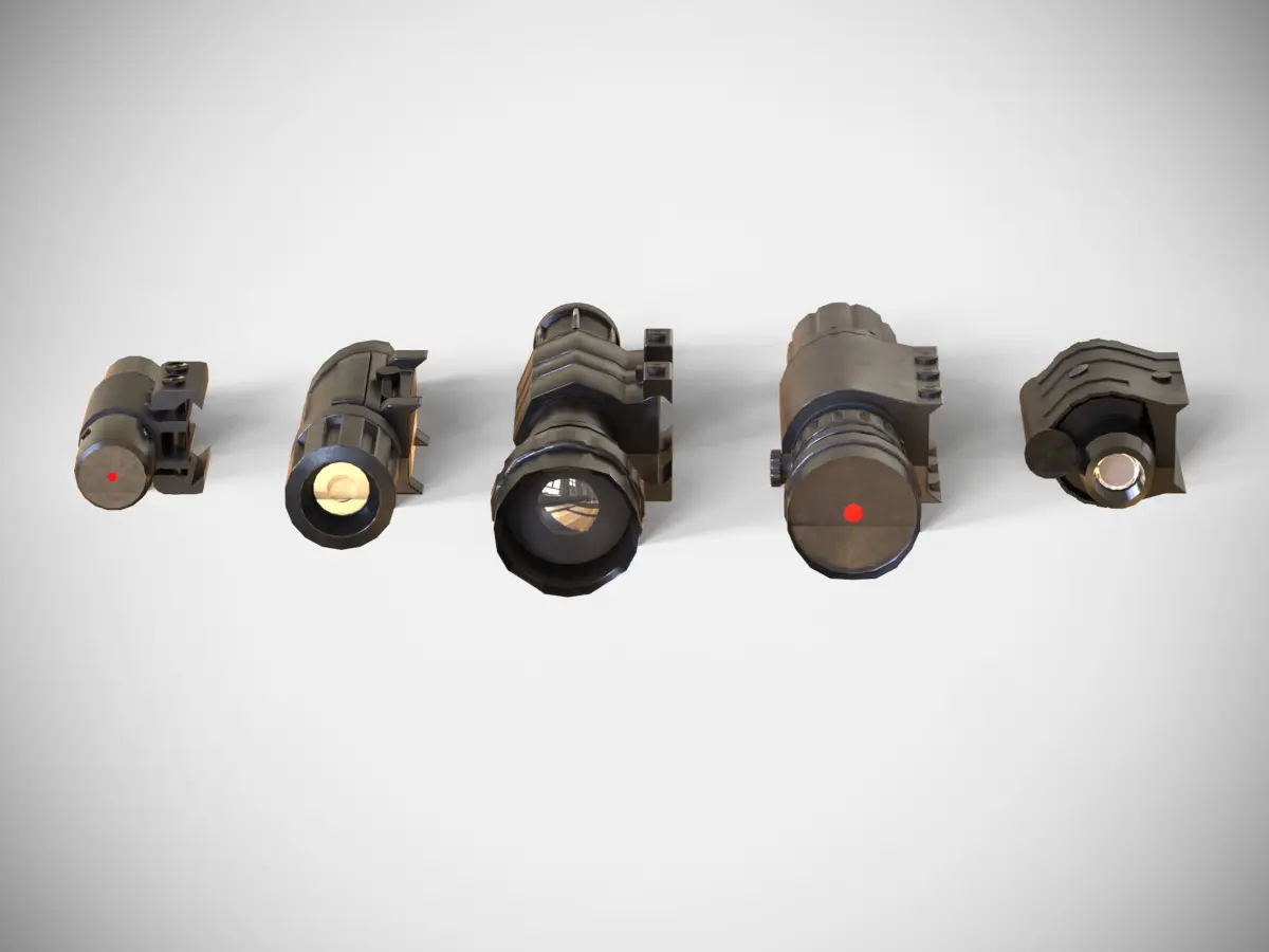 • 2X Flash Lights.• 2X Laser Sights.• 1X Flash/Laser Combo.