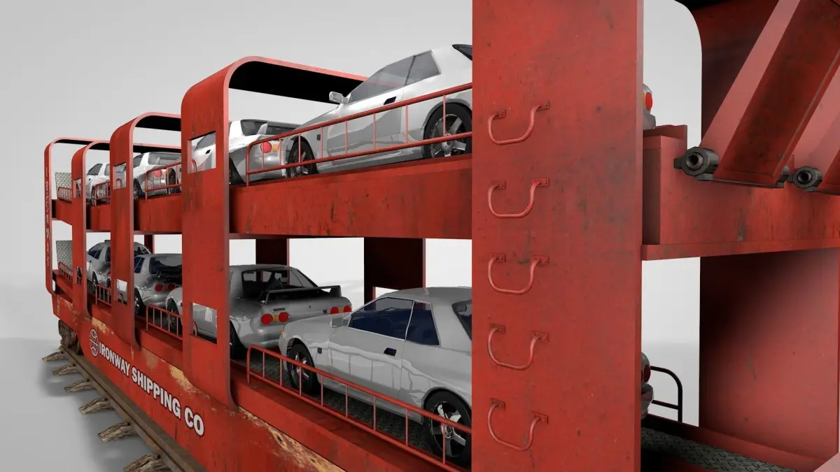 This wagon carries vehicles. Cars and trucks or other vehicles. Laast wagon for heavy vehicles. If trucks are so high delete the beams of 3rd car. Thats it. This one is also one of the special piece of my train car collection.