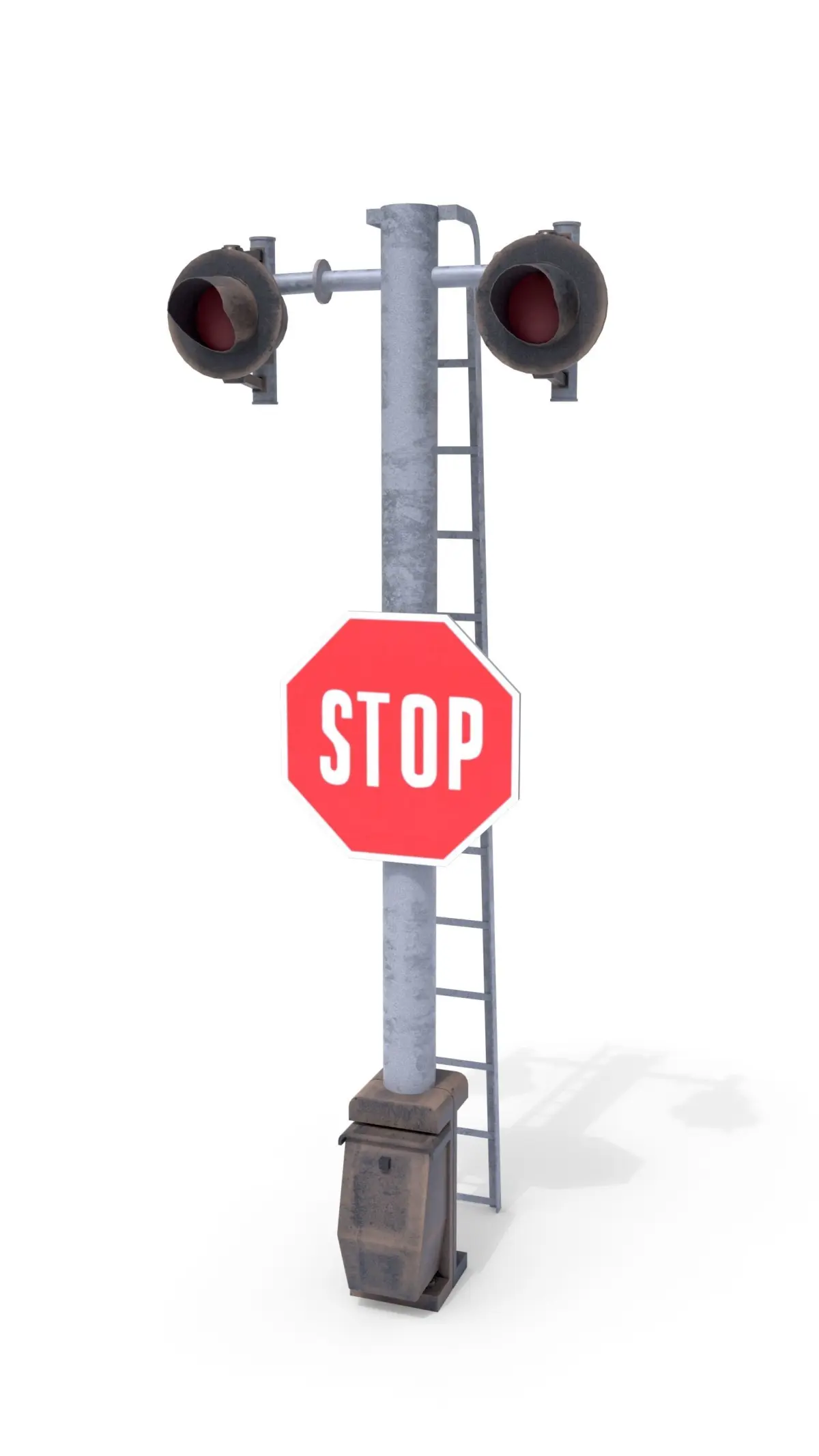Railway crossing traffic light 3d model built in Blender and rendered with Cycles, with PBR materials, Game-Ready.
