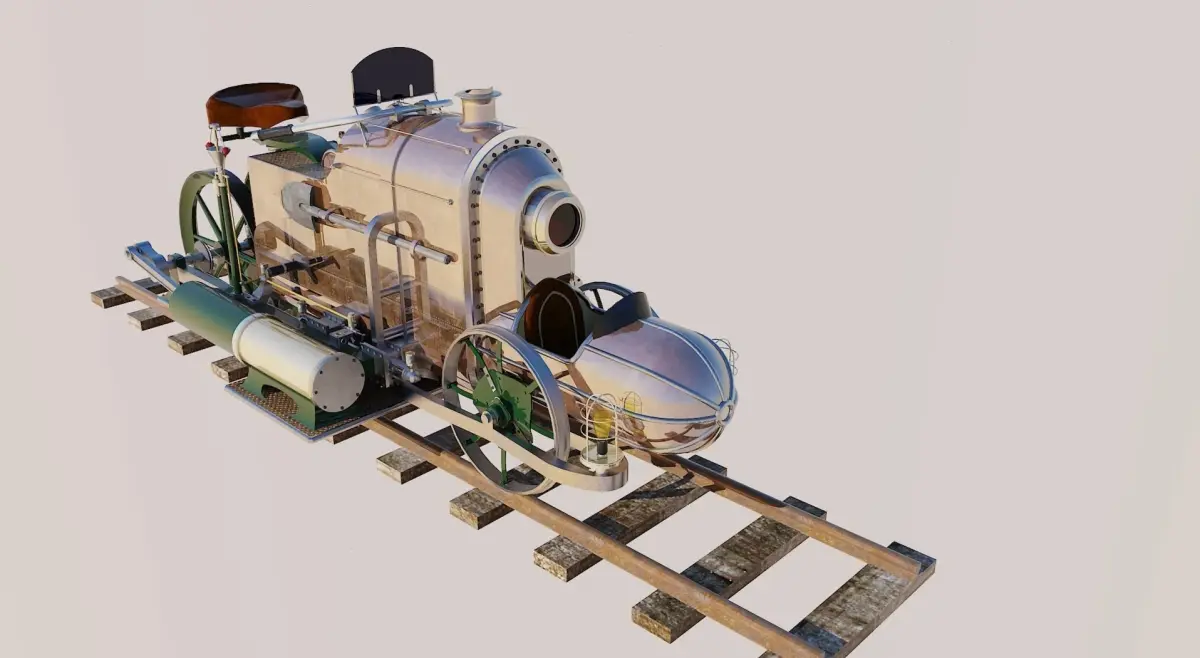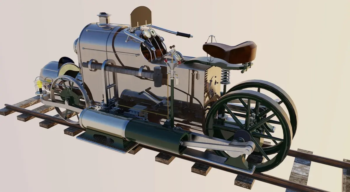 Wohl das schnellste dampfbetriebene Schienen-Motorrad seiner Zeit. Angetrieben durch zwei Dampfmaschinen gleitet es nur so über die Gleise. Wenn es dann fährt und nicht gerade einmal wieder etwas defekt ist. Aber zur not wird mit dem Hammer repariert. Und immer schön daran denken: Das Licht am Ende des Tunnels ist in der Regel eine Lokomotive, die einem entgegen kommt..... in diesem Sinne, habt Spaß.