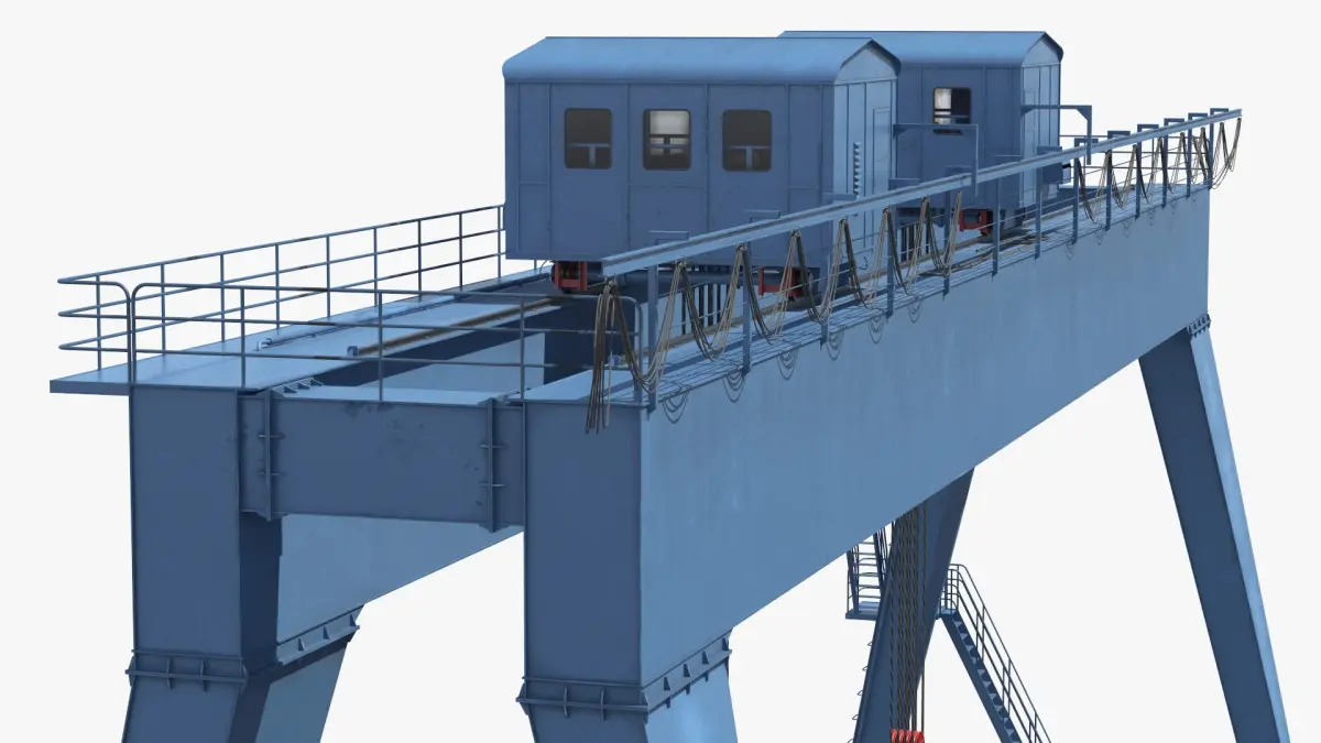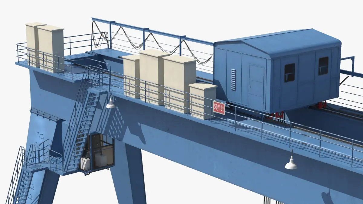 Rail Mounted Double Girder Gantry Crane Blue Simplified is a high quality, photo real 3d model that will enhance detail and realism to any of your rendering projects. The model has a fully textured, detailed design that allows for close-up renders, and was originally modeled in 3ds Max 2020 and rendered with V-Ray. Renders have no postprocessing!
